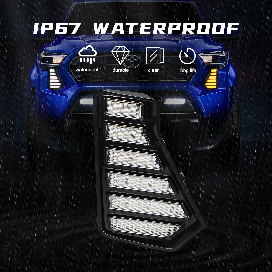 AFOGGEST Daytime Running Lights Kit For Toyota Tacoma 2024-up LED Fog Lamps Specification: Material: ABS Housing+High Quality LED Light Source Type: LED Light Color: White/Amber Functions: Start animation/Running lights/Turn signals Working Voltage: DC 12V Color Temperature: 6000~6500K Working temperature: -40℃-60℃ Installation location: L/R of the car front bumper. NOTE: Before you place an order, please make sure this light is fit for your car. Fit for model:For Toyota Tacoma 2024 2025 Pickup. Professionals install is strongly recommended to avoid trouble caused by inexperienced installer. The installation instructions are not included in the box. Contact seller if you need help. Upgrade/replace your broken fog lights with these upgraded units. Bright LED DRL fog lights make nighttime driving a pleasure. Improved visibility makes your driving safer. LED daytime running lights make you more visible during the day. Features: Bright LED Beads inside. Low power consumption. With plug, easy to be connected. Waterproof, Dust proof, Shock-resistant. Driving more safety in foggy, snow and rainy days. With reverse polarity protection and open circuit protection Wiring method: Black wire-ground/negative Red wire-ACC White wire-headlight low beam Yellow wire-turn signal Package Include: 1 Pair LED Daytime Running Lights (Left, Right) 1 Set Wire Harness