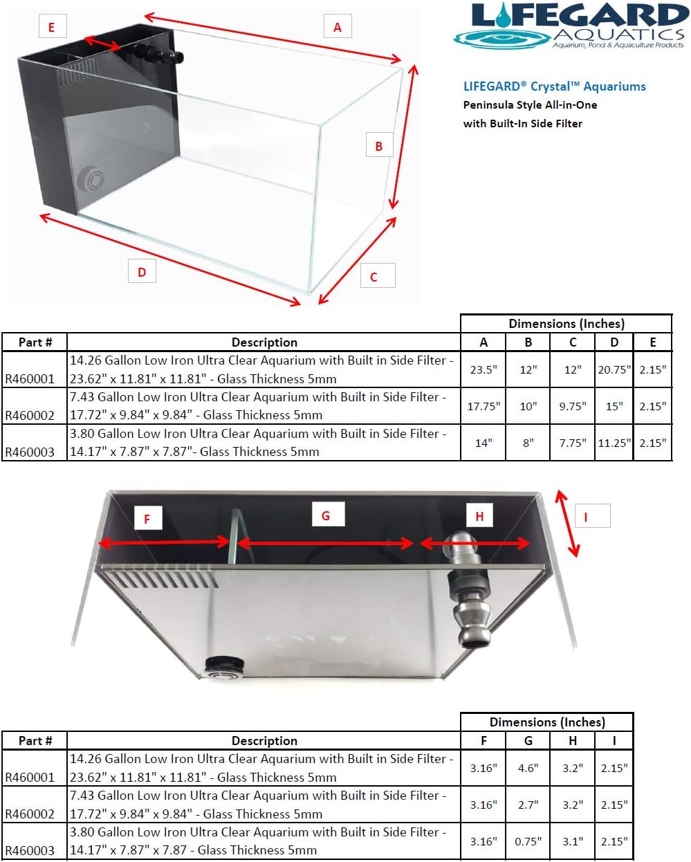 Lifegard Low Iron Ultra Clear Crystal Aquarium with Built in Filter Supply your home with a healthy aquatic environment when opting for the Lifegard Low Iron Ultra Clear Crystal Aquarium that features a built-in side or back filter and a direct jet flow pump. Enjoy crystal clear water with this aquarium kit that includes a Quiet One submersible pump, sponge filters, a bottom insulation pad, bio balls and carbon media. Featuring a Peninsula style, this ultra clear crystal aquarium from Lifegard features rimless glass and a beveled edge. Choose from a variety of dimensions and aquariums that hold up to 1.2 to 24 gallons of water. Lifegard Aquatics is pleased to offer a complete line of aquaculture products for ponds, water gardens, aquariums and more. From full spectrum LED lighting to crystal aquariums and water and garden pond pumps, find high-quality aquatics at Lifegard. Scroll up & click 'ADD TO CART' to get yours