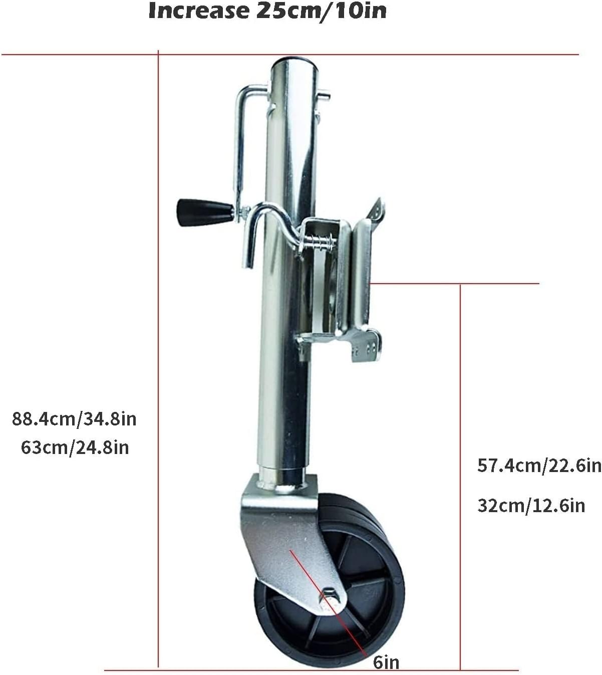 【:Removable and swivel trailer caster, high-quality galvanized surface, 15 cm polypropylene double wheels, including all necessary fasteners, can be installed with 10 cm * 11.2 cm trailer frame, trailer jack is designed for boat and public trailers 【Basic parameters:Product name: trailer jack/RV trailer accessories/trailer leg guide wheel/trailer leg guide wheel/trailer guide wheelProduct weight: 8.5 kgMaterial: steelCapacity: 675 kgHeight: 25 cmLifting height: 25 cmWay: sideAccessories: equipped with practical 10 cm long screws and mounting plateWide range of uses: trailer support wheel, foldable design, convenient driving and parking, widely used to support various boat trailers, yacht trailers, RV campers. 【Product Package: 1*Swivel Trailer Jack 【Please note the following: - Due to manual measurement, there may be slight errors in size. - Due to different screen displays, there may be slight differences in color. - Please be careful when using the product, please refer to the actual product.