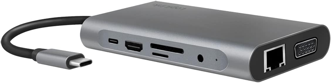 | Item Type Name | LogiLink UA0383 - USB 3.2 (Gen 1) Docking Station with 10 Ports and PD (Power Delivery) 100W, 1 USB-C (PD) / 3 USB 3.0 / 1 HDMI / 1 VGA / 1 RJ45 / 1 microSD / 1 SD / 1 x 3.5mm Audio / Silver |