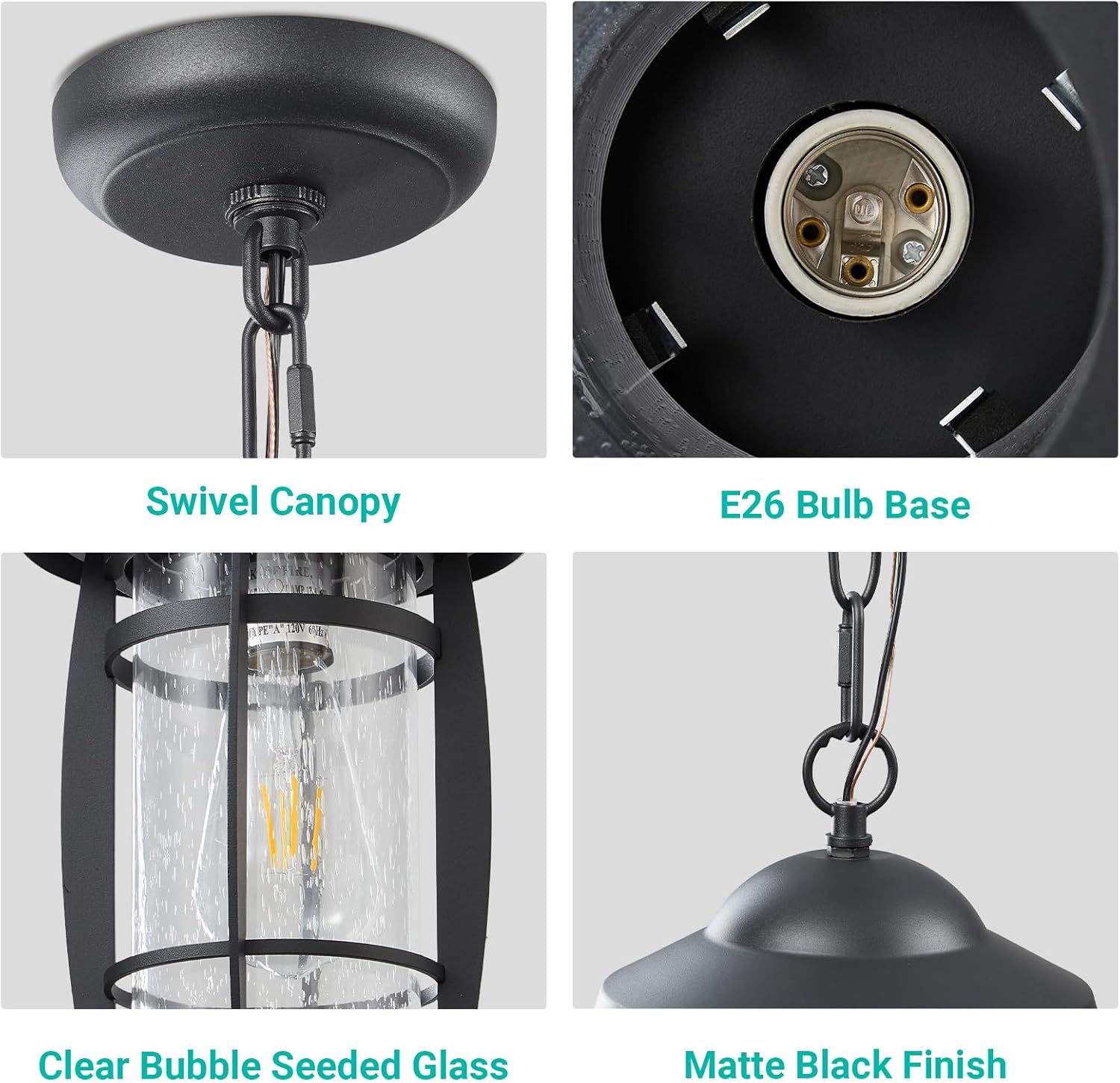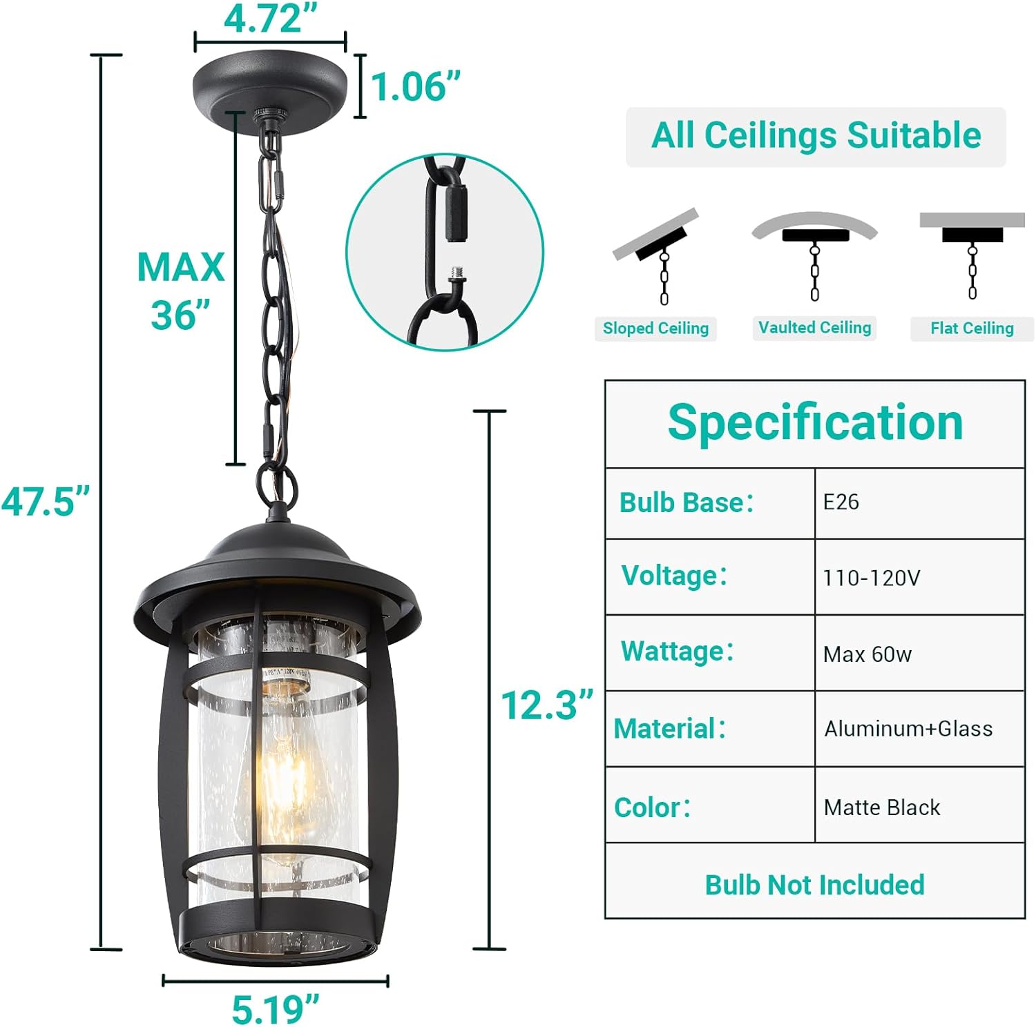 | Included Components | 1 x Outdoor Pendant Light Matte Black, Instruction Manual, Mounting Hardware |