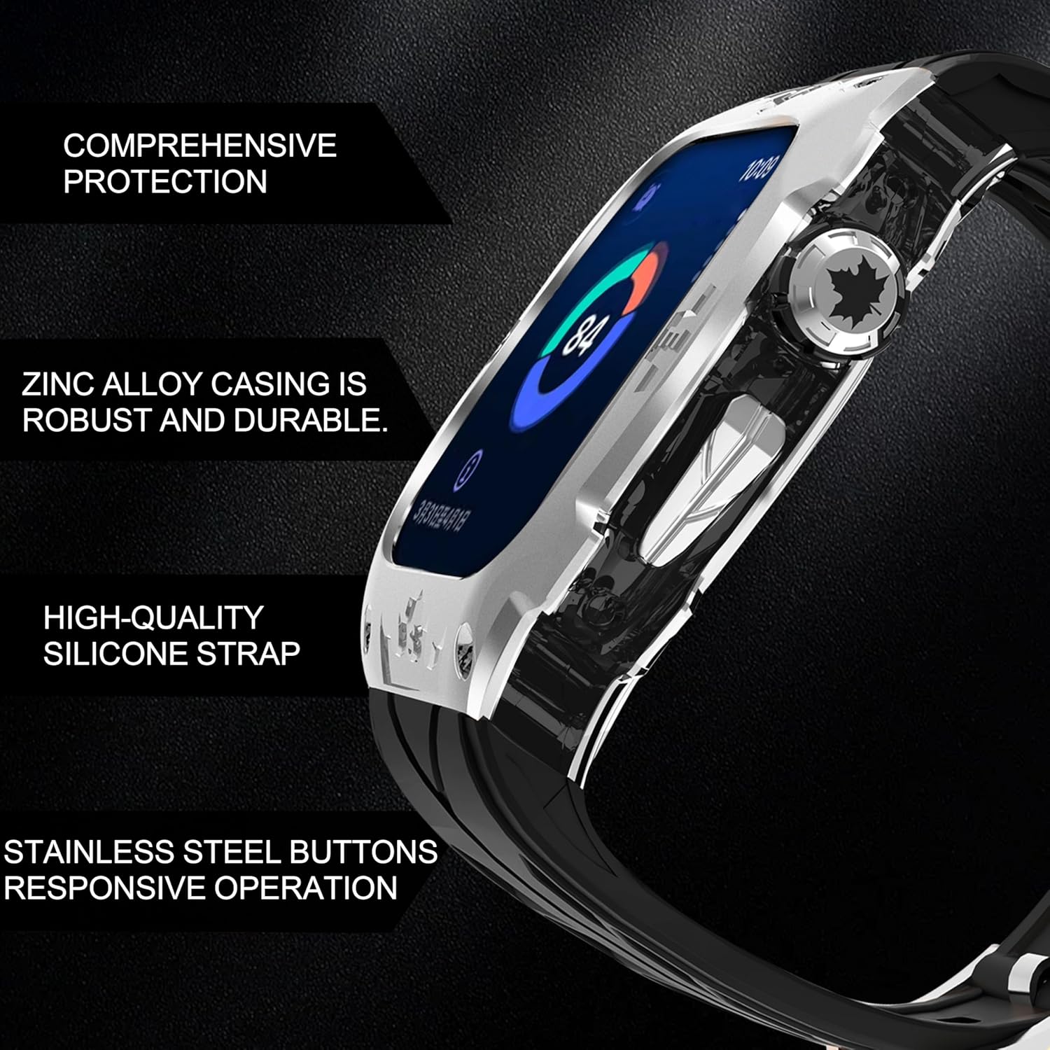 Case: metal case, scratch resistant and durable. Lining: Built-in independent silicone protective cover(46mm) as a buffer layer, anti-wear, anti-drop and shock-proof Strap: High-quality rubber material, environmentally friendly and skin-friendly and dustproof, stable performance, easy to clean.