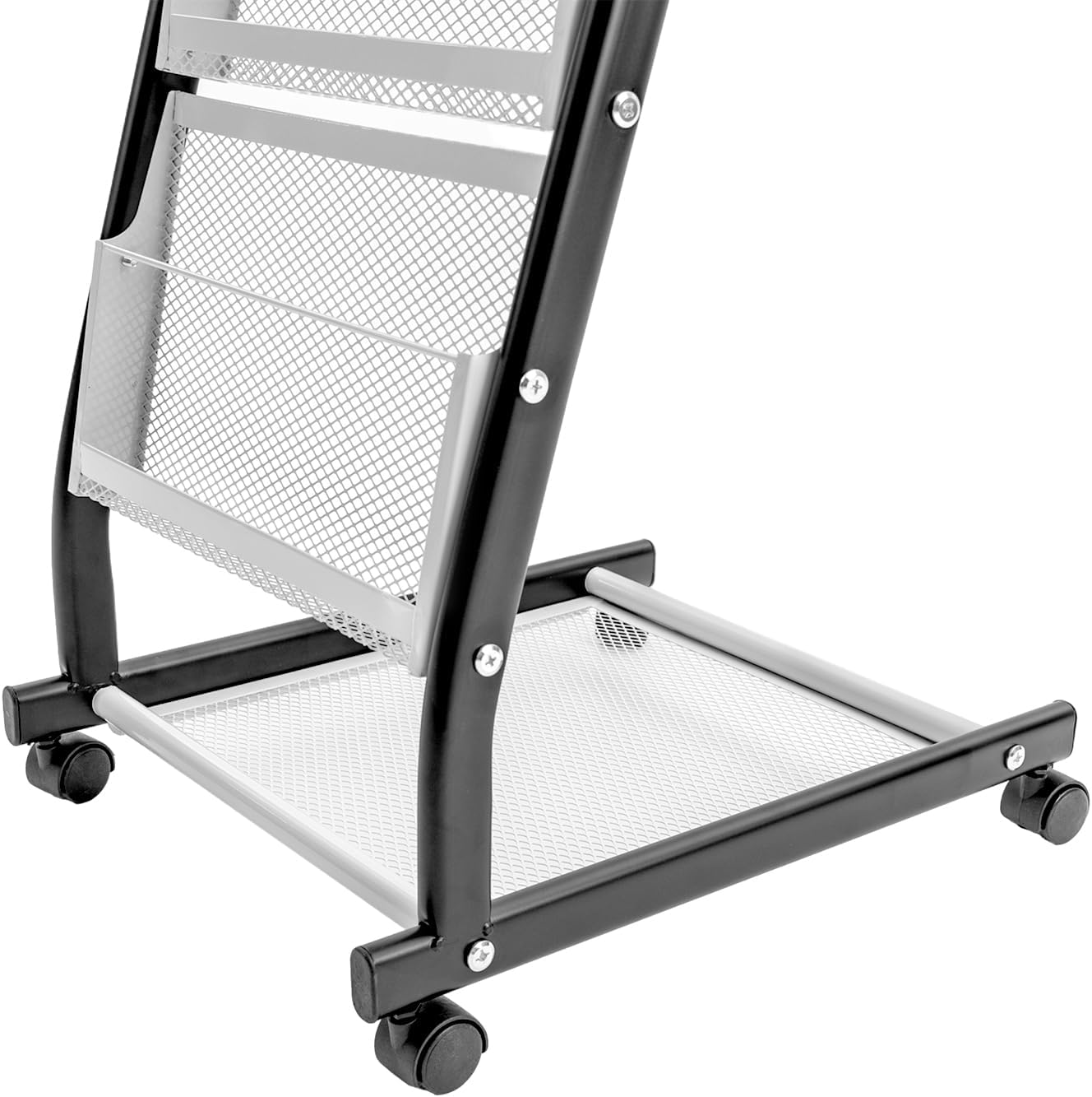 DetailsHeightened Bottom: It effectively avoids contact with the ground, making this product convenient for cleaning.Open Frame: It allows for easy access to items.ApplicationIt is suitable for displaying magazines, journals, brochures, books, etc. in conference rooms, libraries, homes, bank lobbies, hotel receptions, real estate, etc.SpecificationMaterial: IronColor: Black, WhiteStyle: ModernShape: RectangleProcess: Paint Baking, PolishingNumber of Tiers: 6 Assembly Required: YesMounting Type: Floor MountedOverall Load-bearing Capacity: 50kg/110.2 lbsCross Weight: 6kg/13.2lbsEach Basket Size: 29.5*18.5cm/11.6*7.3inProduct Size: 32.5*40*152cm/12.8*15.7*59.8inPackage Size: 97*41*9cm/38.2*16.1*3.5inPackage Included1* Magazine Rack1* English Manual Other Accessories for InstallationNotes1. Please check the product size before purchasing to make sure it fits your needs.2. Please note that this product does not include magazines, journals, brochures, books, etc.3. Please read the operating manual completely before use.4. Please allow the slight color difference caused by the shooting light and 1-3 cm error due to manual measurement, and make sure you do not mind before ordering.