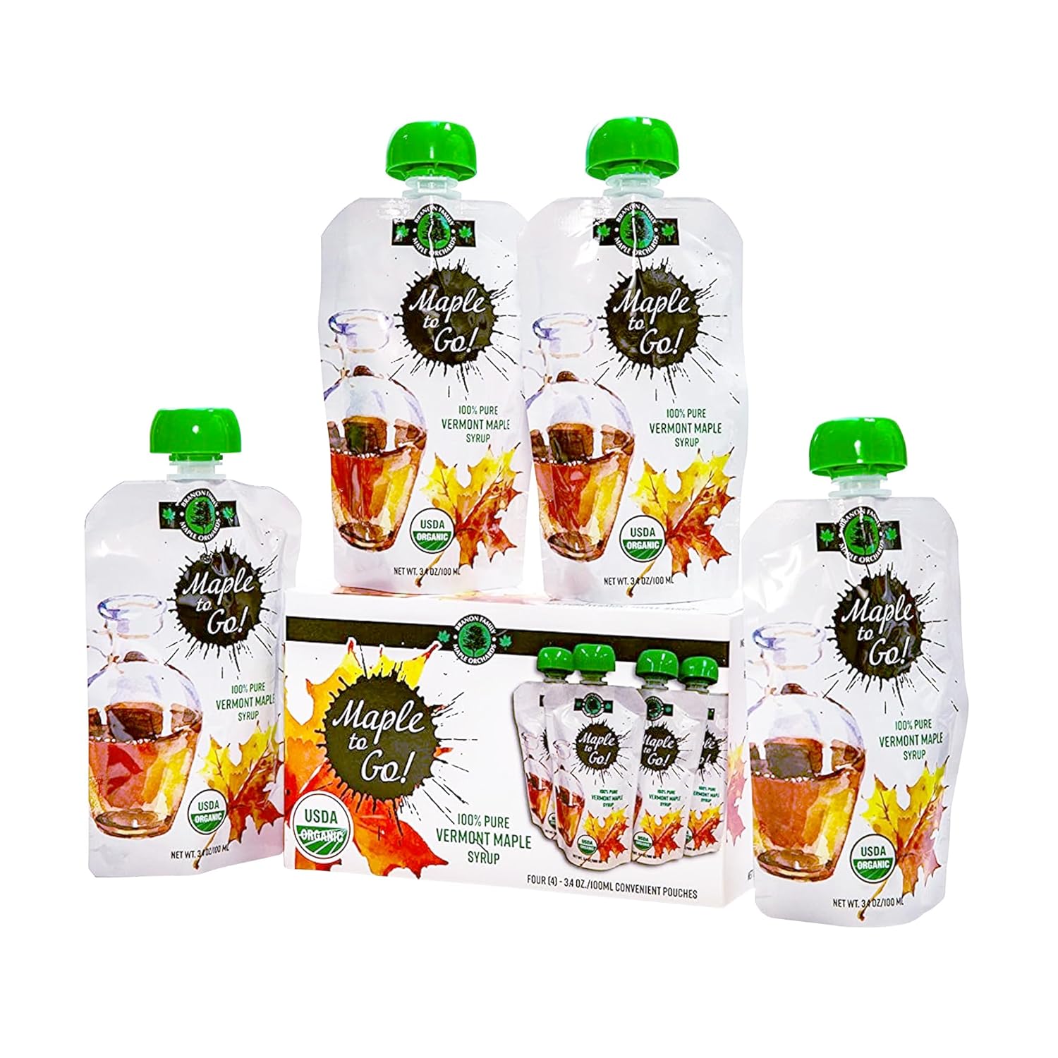 The Branon Family Maple OrchardsWe are keeping busy in the kitchen with our NEW product release of Maple to Go!Natural Vermont Maple Syrup 4 Pack of 3.4oz or 100ML Individual Maple Syrup Packets with Resealable Twist Cap|Pure Organic Grade A Mini Syrup Bottles Ideal for Active and Healthy Lifestyle Like Hiking, Camping, Biking, Traveling and for Use in Small Kitchens✔ RICH TASTE SYRUP - Our grade ‘A’ amber color syrup provides a naturally sweet, rich and smooth taste It’s light and sweet and delicious without being too strong or weird tasting.✔ NATURAL FOOD - This 100% organic pure Vermont maple syrup contains no artificial flavors, preservatives, or dyes, this grade A syrup is non-GMO, gluten-free, and nut-free. Made in the USA.✔ MAPLE STREAM EASE - The whole family will love this new maple to go packaging. Mess free, versatile, and fun for everyone, this organic maple syrup is the perfect addition to active, healthy lifestyles for hiking, camping, commuting, biking, traveling, or for use in small kitchens.✔ PACKAGING BENEFITS - Easy-open, easy-pour, containers are tamper-evident with an inner seal twist cap. They ship well. Syrup stored in BPA-free plastic containers retains its natural flavor better than in traditional tin containers.✔ NON-GMO INGREDIENTS – It’s a keto-friendly food with no added unnatural flavors like high fructose corn syrup - caffeine-free to enjoy any time of the day or night.The perfect addition to active, healthy lifestyles, a single pouch of Maple to Go!™ is a no-fuss, no-muss choice for hiking, camping, commuting, biking, traveling or for use in small kitchens.Add to Cart NOW!