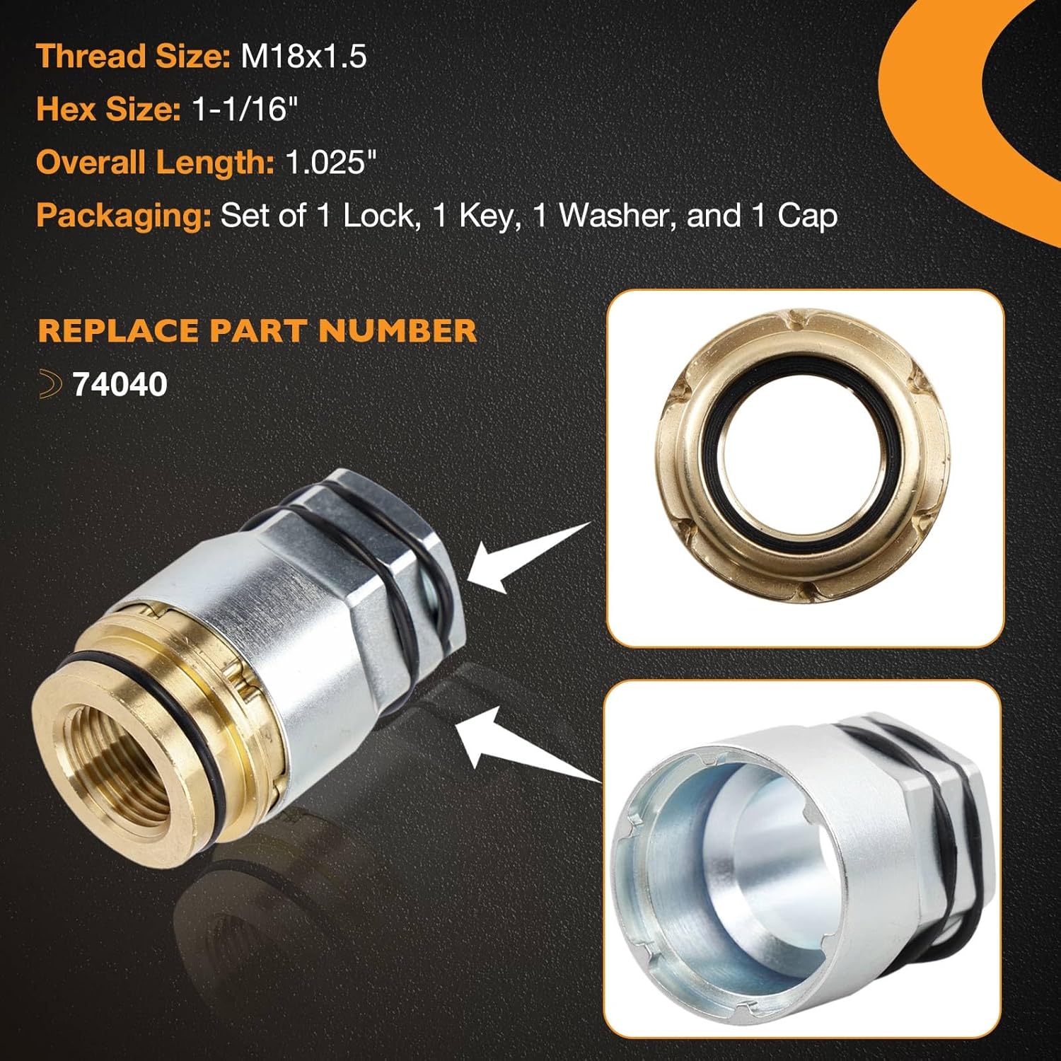 Product Description:Fitment: Marine Propeller Lock Set (M18 x 1.5 Thread Size) Compatible with Honda, Yamaha, Suzuki.Fit for All Yamaha Stern DrivesFit for Honda 75 HP and largerFit for Yamaha 115 HP and larger Fit for Suzuki 40 HP and largerReplace Part Number#- 74040Product Specification:Style: Propeller Locks Thread Size: M18x1.5Hex Size: 1-1/16"Overall Length: 1.025''Packaging: Set of 1 Lock, 1 Key, 1 Washer, and 1 CapVantage1.Primary function: Prevents theft of your expensive propeller.2.Secondary function: Replaces the standard propeller nut with a more secure alternative.3.Peace of mind: Adds a layer of protection for boats stored at marinas or unattended docks.4.Easy to install: Can be installed by the boat owner with basic tools and the included key.