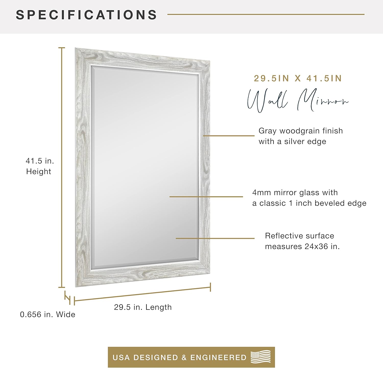Create an inviting modern and contemporary style for your home with the MCS Gray Woodgrain curvature beveled wall mirror. The modern Gray Woodgrain finish creates a relaxing luxurious atmosphere to any space. Add this eye catching mirror to your contemporary living room, bedroom or bath.