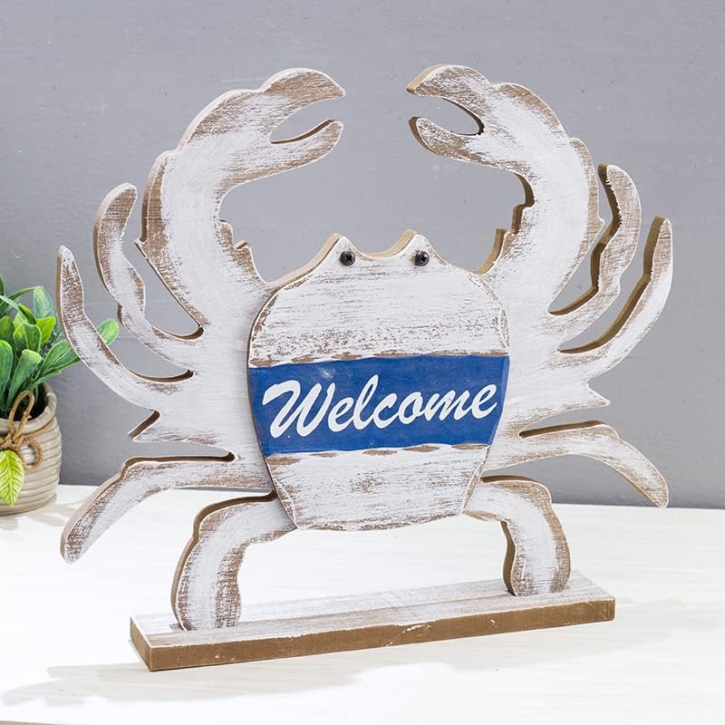 Features:Size:34*30*5cm/13.38*11.81*1.96 inch..Made of quality wood material.This charming plaque decor will bring that seaside vacation feeling to any room in your home, which is an ideal decoration for your home or any coastal, and beach theme parties decorations.This unique,it is sure to be the perfect way to greet your guests.You could also use them as unique decor in your home all year long.Perfect for kids toys, garden lawn animal miniatures ornaments props, home decoration, , party decoration, festival friends gifts etc.Package included:1 x Mediterranean Style Wooden Crab Model