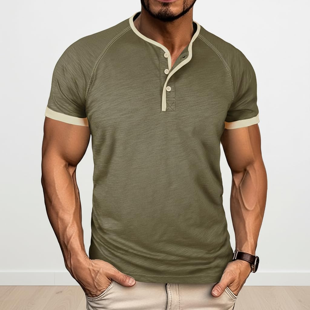 Men's Raglan Henley Shirt Short Sleeve Athletic Fit Casual Cotton Tee with Contrast Trim 3-Button Neck Lightweight