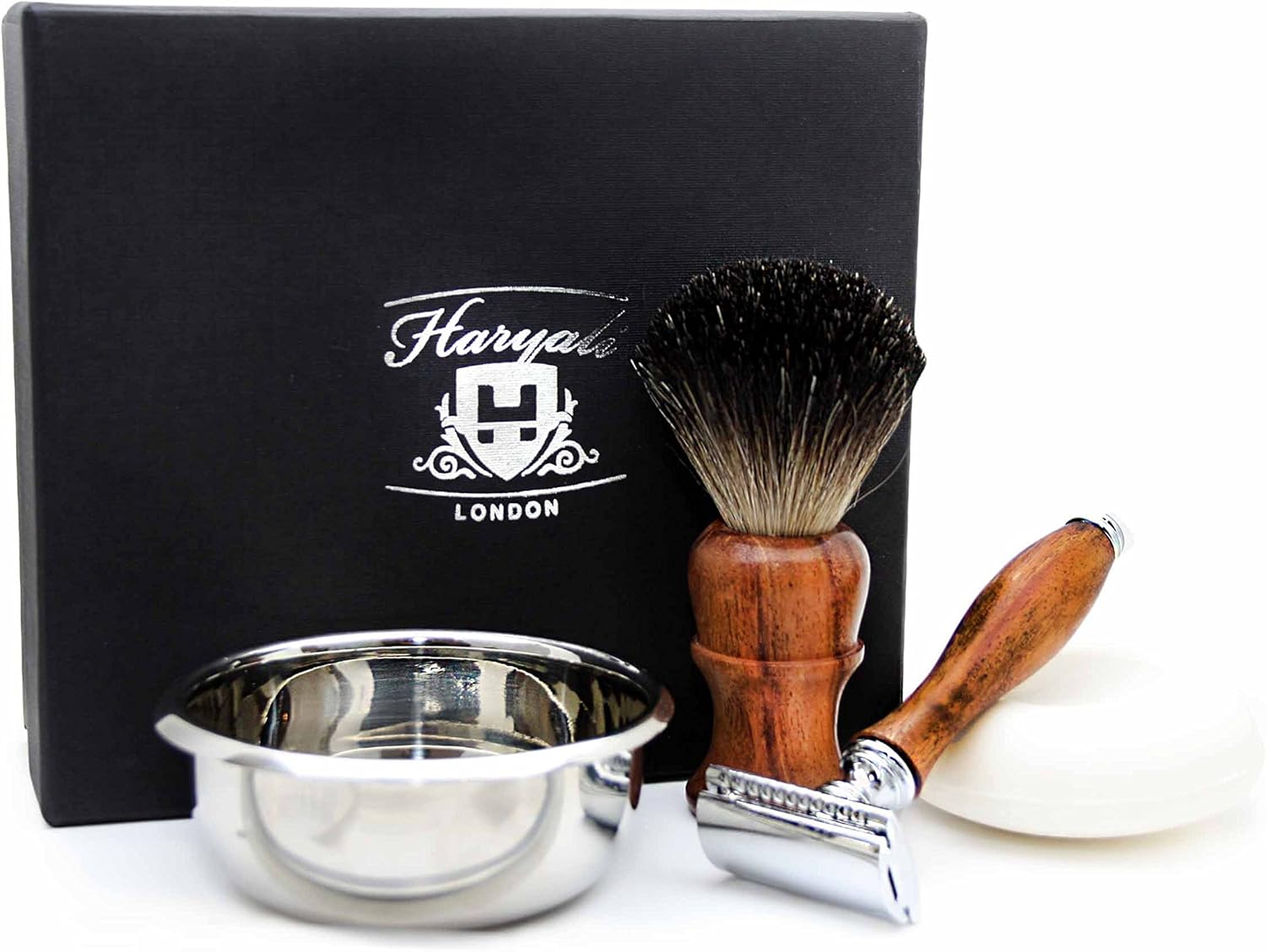 HARYALI LONDON PROVIDES TRIPLE EDGE COMPATIBLE MEN SAFETY RAZORS. (Pure Wooden Handle) If it's a close yet very comfortable shave you're looking for look no further.This razor uses readily available Triple Edge blades that are tug free and smooth on the face providing you use a sharp blade. Get up to 150 shaves from a single blade - highly recommended! The razor is branded with the Executive Shaving logo, a guarantee of quality and finished in traditional wooden Handle. Presented in a box which will protect the razor when you're on your travels. This Triple Edge compatible razor has been designed to provide optimal balance whilst sitting comfortably in your hand. This is an exceptional wet shave razor in looks and performance.