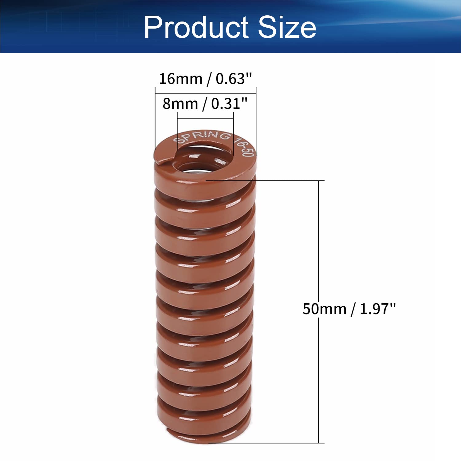 Is a professional supplier of various hardware products. There are a variety of different sizes and different colors of mold springs in the store. Each color represents a different load-bearing load and is suitable for different occasions. We believe that higher quality and lower cost can help our customers save time and money. Please confirm the product size when purchasing. Mold springs are harder than regular springs, which helps your 3D printer be more stable when printing.Generally speaking, there are yellow, blue, red, green, brown springs sorted by different load,die spring is the YELLOW one, which is the lightest load one.Yellow means the load level islighter load;Blue means the load level is light load;Red means the load level is middle load;Green means the load level is heavy load;Brown means the load level is overweight load.Unscrew the adjustment knobs from the bottom of your print bed.And replace those stock springs with these new ones.Screw the adjustment knobs back into the print bed with these new springs.Then you're free to go! Level your bed and keep on printing.These springs may seem trivial, but the springs used on 3D printers can improve print quality and stability. Rectangular Section, strong, keeps print bed level better. The heatbed springs are well suited for high stress applications, but also suitable for various of other applications. Compatible with most 3D Printer Bed. QUICK AND EASY INSTALLATION Die Spring Outstanding Performance Application Feature