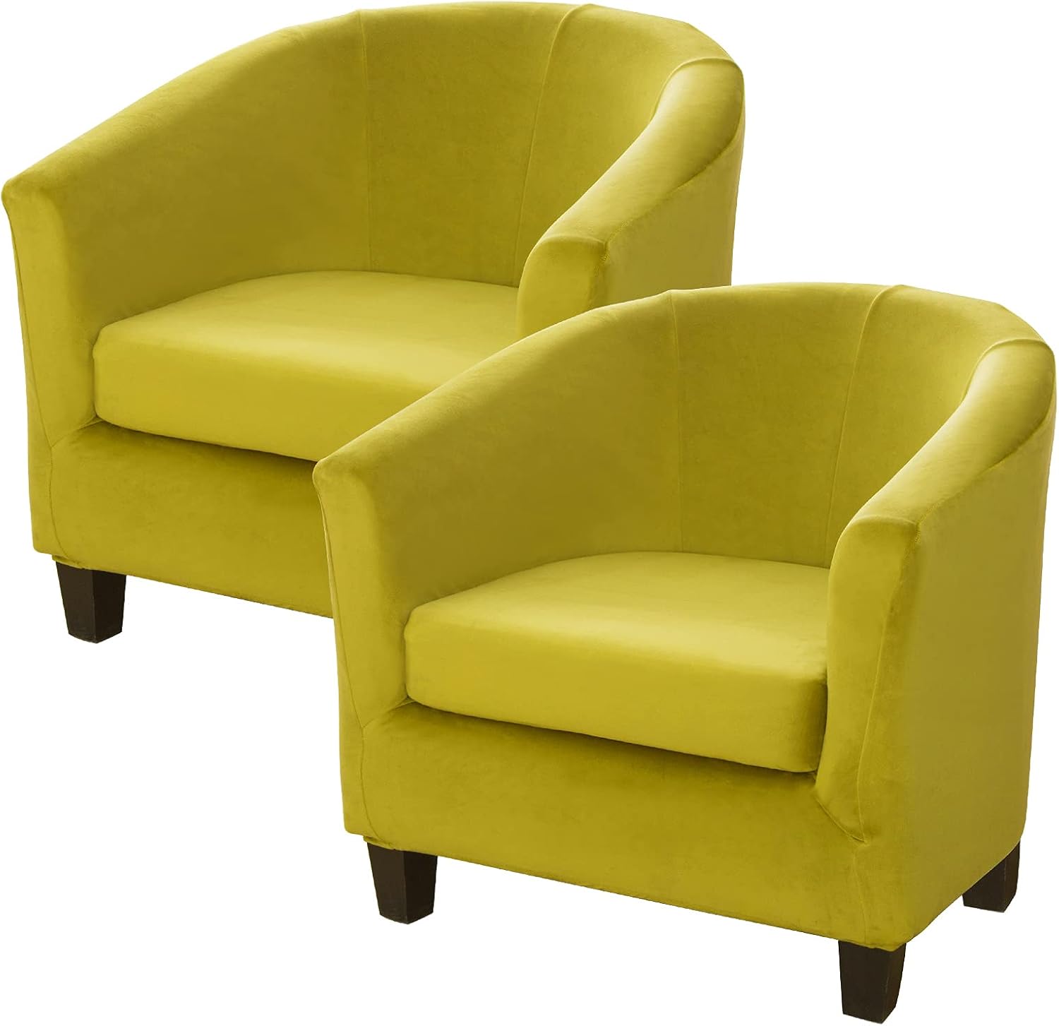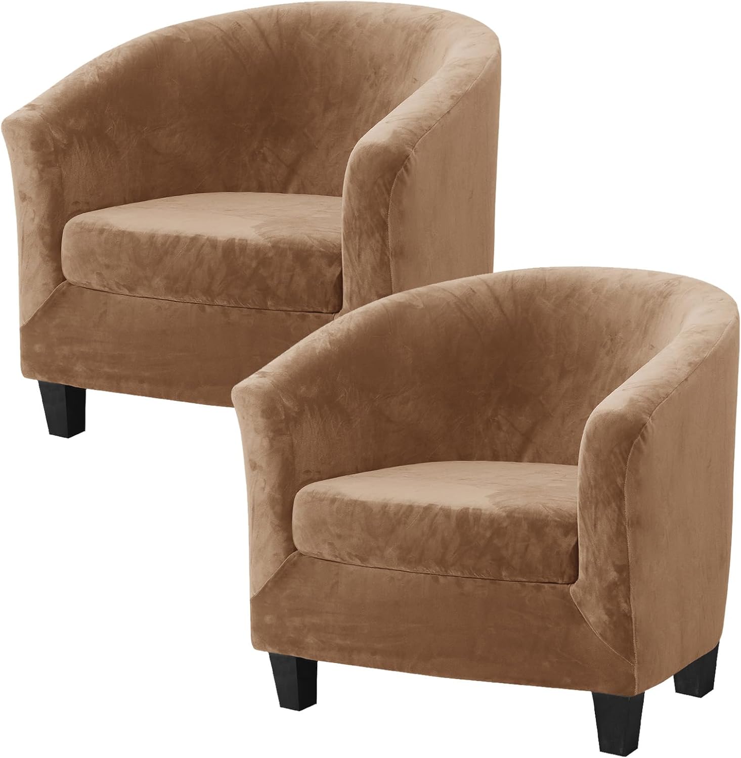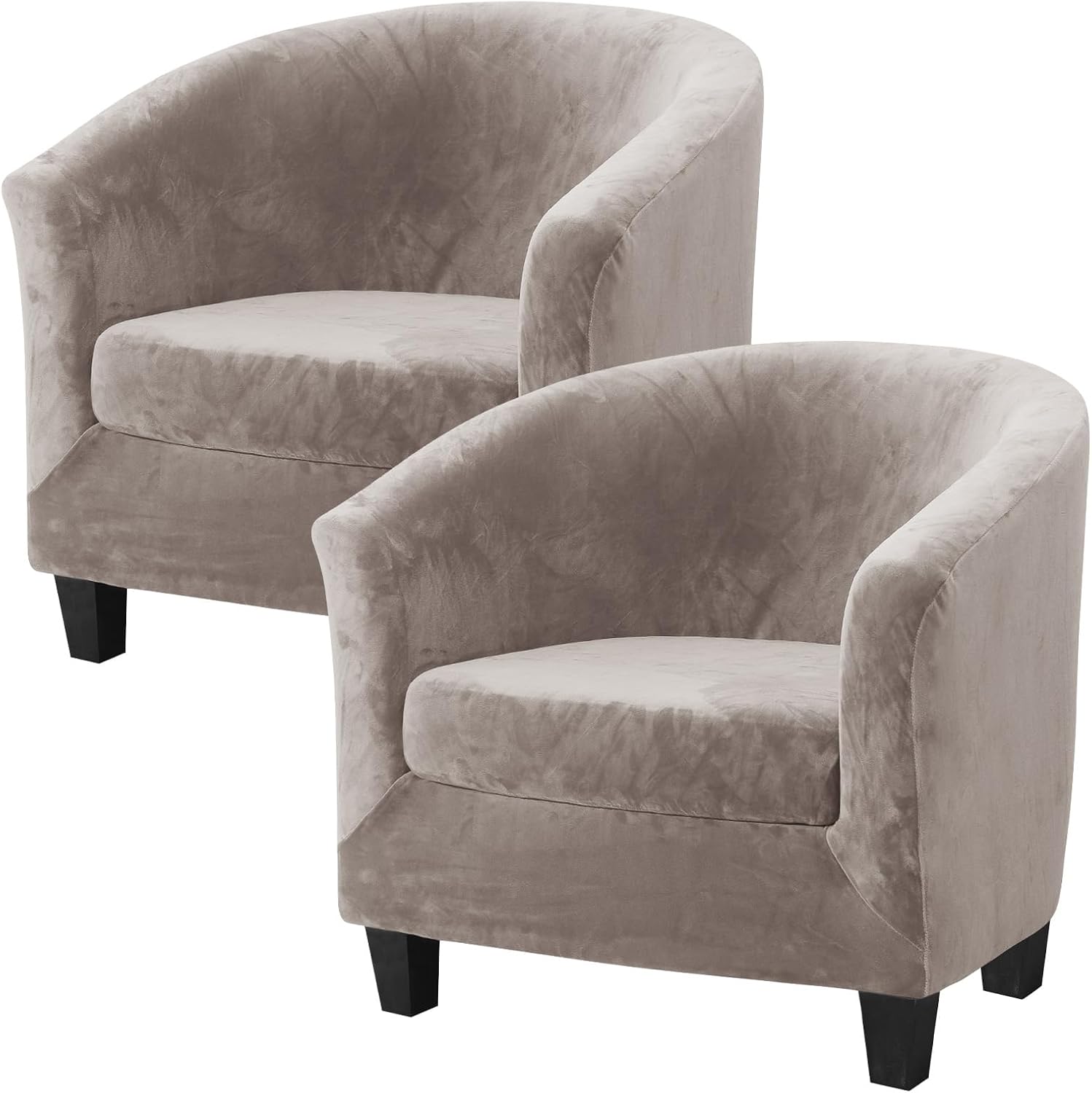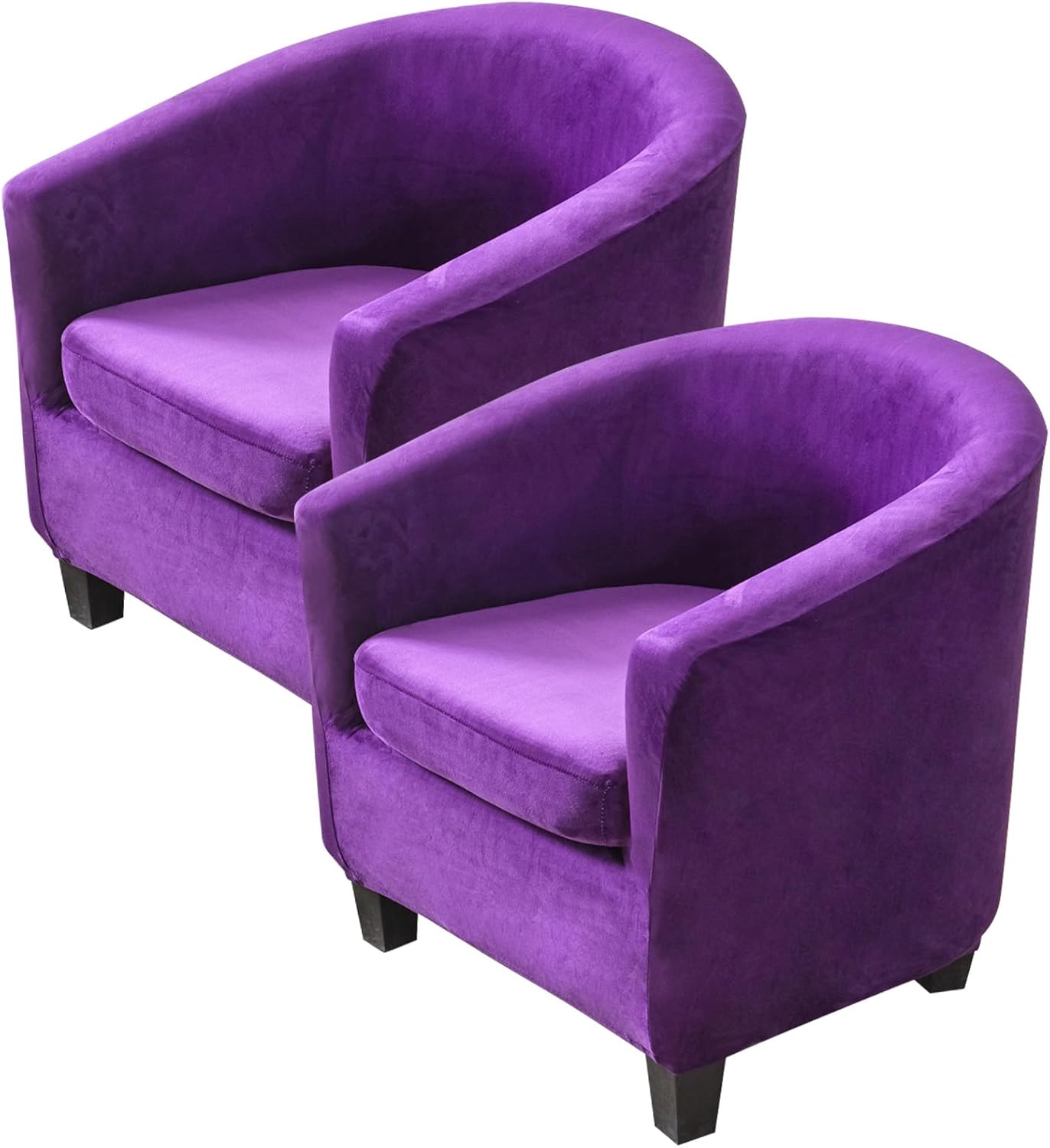 MIFXIN 2-Piece Velvet Club Chair Slipcovers can not only give people stylish feeling, but also prevent damage and make your old club chairs look elegant and new! It is a convenient way to protect your furniture without a big expense, perfect for homes with children and pets.Solid Color with luxurious velvet stretch polyester fabric, look rich and elegant. Very comfortable and soft to sit. Your family will much love it!Size (approx.)Tub Chair Height: 65-72cm/25.6-28.3inchTub Chair Length: 65-75cm/25.6-29.5inchTub Chair Width: 55-65cm/21.6-25.6inchCushion Length: 45-52cm/17.7-20.5inchCushion Width: 50-55cm/19.7-21.6inchHow to install?Step 1: Remove the set cushion.Step 2: Place the slipcover around the top of the chair.Step 3: Drape the slipcover over the entire tub chair.Step 4: Adjust the all fabric to line up the seams of the black and armrest.Step 5: Cover the separated seat cushions by elastic strap all round.Step 6: Put the covered seat cushions back.Package include:2 Set of Tub chair base cover with seat cushion coverNote:1. We recommend that you buy a chair cover that is slightly larger than your chair due to a deviation of about 2-3 cm.2. Because slipcover is elastic, do not iron. If ironed, will lose some elasticity.3. Due to different screen displays, the color of the product may be a bit different from the picture.