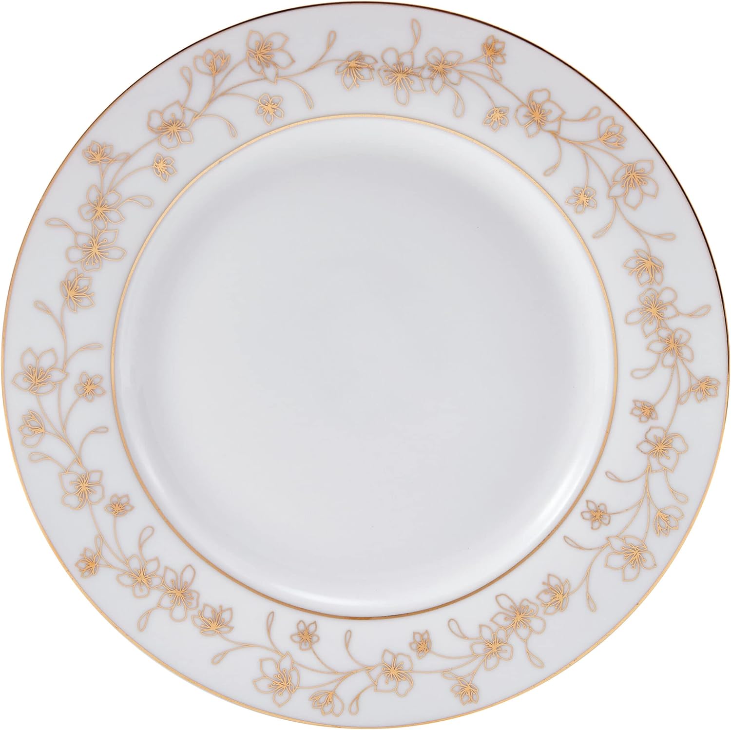 Celebrate classic style at all your formal dinner gatherings with this Metallic Floral 32-Piece Set by Mikasa. Beautifully crafted of high-quality porcelain, this crisp white dinnerware in traditional shapes is adorned with a garland of delicate florals in metallic gold, bringing a touch of elegance to your tabletop display. 32-piece set, service for 8, includes 8 each of: 10-1/2 inch dinner plate, 7-1/2 inch salad plate, 5-1/2 inch all-purpose bowl, and 12-fluid ounce teacup. Hand-wash with warm water and a mild detergent then rinse and dry.