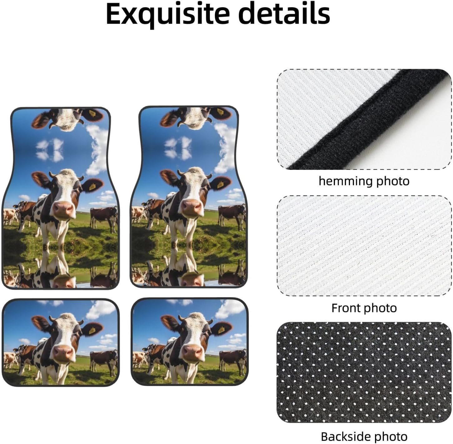 Add a touch of elegance to your car. Our milk cow milk cow printed car mats are light-resistant and stay colorful even in the hot sun. They are tightly woven, soft and firm to the touch, easy to clean, and can be easily rinsed to remove stains and keep your car clean. The drop-molding process on the bottom not only prevents dust from entering, but also simplifies the installation process. The non-slip design ensures stability in any driving situation, ensuring your safe driving. Suitable for a variety of models, whether it is a car, truck or van, this mat can perfectly blend with your interior style.