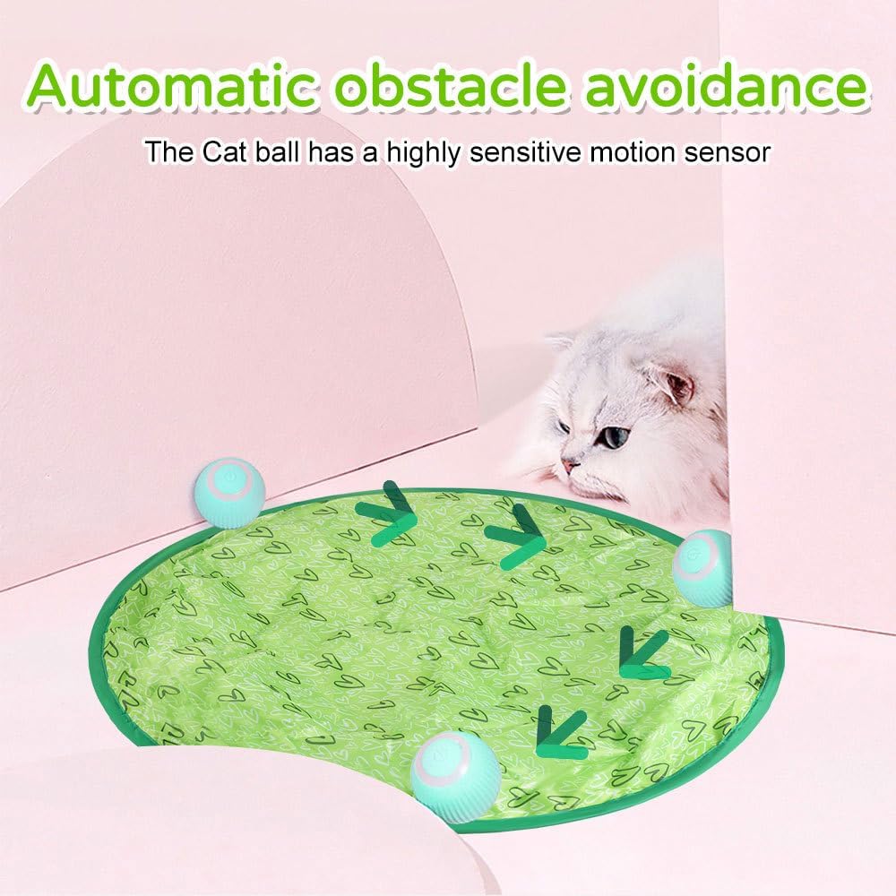 Welcome to my store , Hope you have a pleasant shopping trip! Features:1.【High Quality ABS+Silicone】: The teaser ball is made of ABS shell, outer silicone protective cover, rolling quietly to reduce noise interference.2.【Automatic Barrier Avoidance】: The teaser ball has a built-in high sensitivity motion sensor, automatically avoiding obstacles without worrying about getting stuck.3.【Hidden Interaction】: Place the cat ball under the cover and the ball moves randomly under the fabric, simulating the prey escape scene in nature.4.【Normal Mode】: The yellow indicator light will be on for 3 seconds, and the ball will roll freely for 5 minutes after it is turned on.5.【Smart Mode】: The blue light will be on for 3 seconds, the ball will work for 5 minutes and then turn off and enter standby mode, activated when the cat touches the toy.Specifications:Weight:210g/ SetColor: Blue + GreenBall diameter: 4.3cm/1.7"Cover diameter: 70cm/27.6"Material:Nylon + Silicone + ABSUsing time:Continuous Working about 2~3 hoursPackage List:1 x Motorized Cat Balls1 x Catch Cover1 x USB CordNotes: 1. Due to the difference between different monitors, the picture may not reflect the actual color of the item. We guarantee the mode is the same as shown in the pictures.2. Please allow 1-2cm slight dimension difference due to different manual measurement.