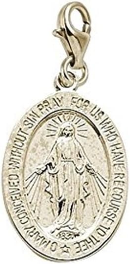 Experience the quality of Rembrandt Charms. This Miraculous Medal Charm with lobster claw clasp is stamped with the metal quality mark and RQC trademark. All Rembrandt products have a Lifetime guaranteed. Please note the images above are enlarged to show detail. The charm is 23.65 MM long x 18.01 MM wide, it's handcrafted, made to perfectly fit your charm bracelet and will be great add-on to any charm collection.