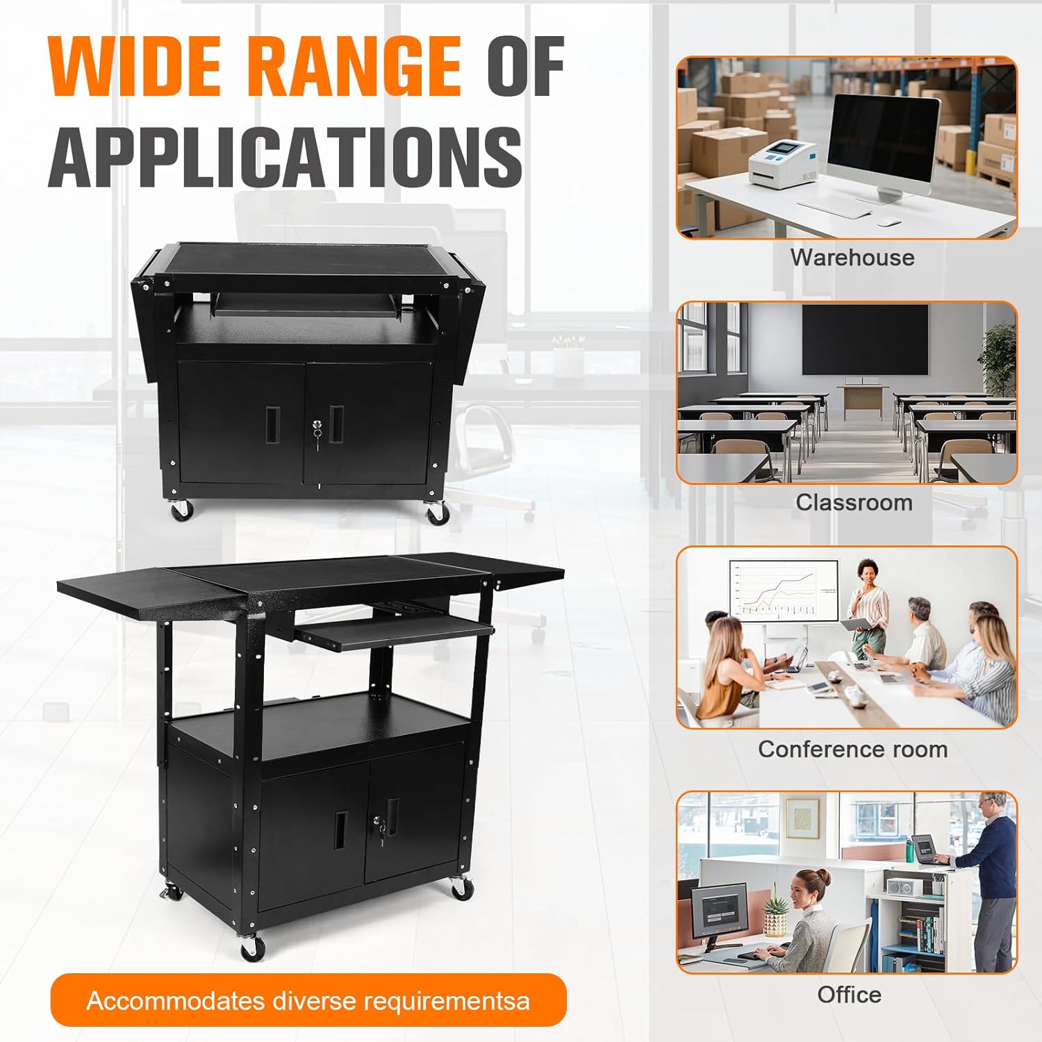 Specification:Origin: Mainland ChinaMaterial: Carbon Steel Size: 812.8x1050x470mm/32x41.34x18.5inch Note:Due to different monitor settings and lighting conditions, the actual color of the item may vary slightly from the pictures. Thanks for your understanding!Please allow a 1-2 cm difference in measurements due to manual measuring. Package includes:1 x AV Cart