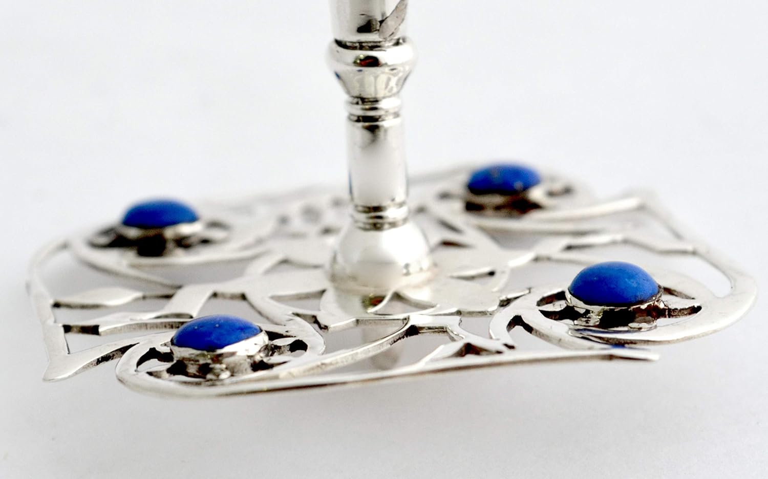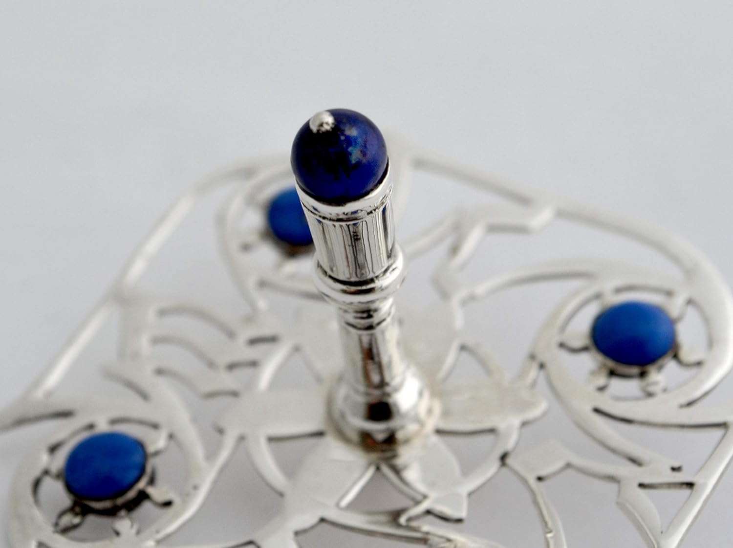 Special sterling silver dreidel decorated with the Hebrew letters represent the words "nes gadol haya sham" (a great miracle happened there) with five semi-precious stones (you can choose between Lapis (Blue)/Amethyst(Purple)). Hand carved in our studio. The perfect and quality addition for your dreidels collection or a gift for your Children boy and girl for this Hanukkah holiday. Dimensions: 2"w x 1.5"h Weight - 18gr