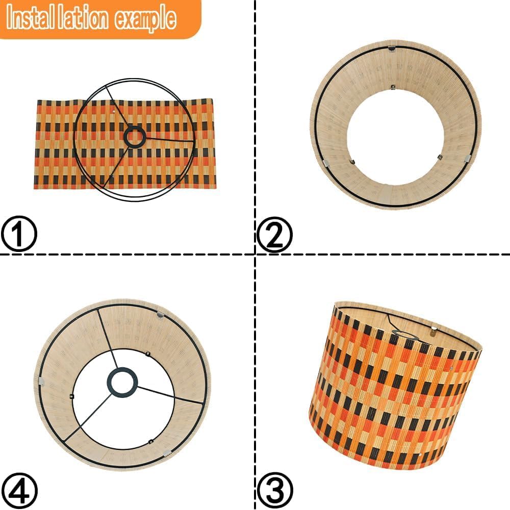 Transform your living space with this striking cylindrical lamp shade featuring an elegant black grid pattern on a natural-toned background. The contemporary design measures 11.8 inches in width and 9.05 inches in height, making it perfectly proportioned for both floor and table lamps. The shade's rustic style combines modern aesthetics with classic appeal, creating a versatile lighting accessory that complements various home decor themes. Its foldable construction offers practical storage and transport solutions while maintaining structural integrity. The cylindrical shape provides balanced light distribution, casting beautiful patterns through its distinctive striped design. This decorative shade weighs just 1.1 pounds and comes ready to mount with a freestanding design, making installation straightforward. Whether illuminating your reading nook or adding ambiance to your living room, this artful lamp shade brings both function and style to any interior setting. The geometric pattern creates an engaging interplay of light and shadow, adding depth and visual interest to your space.