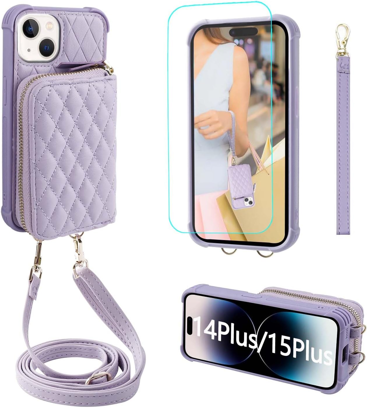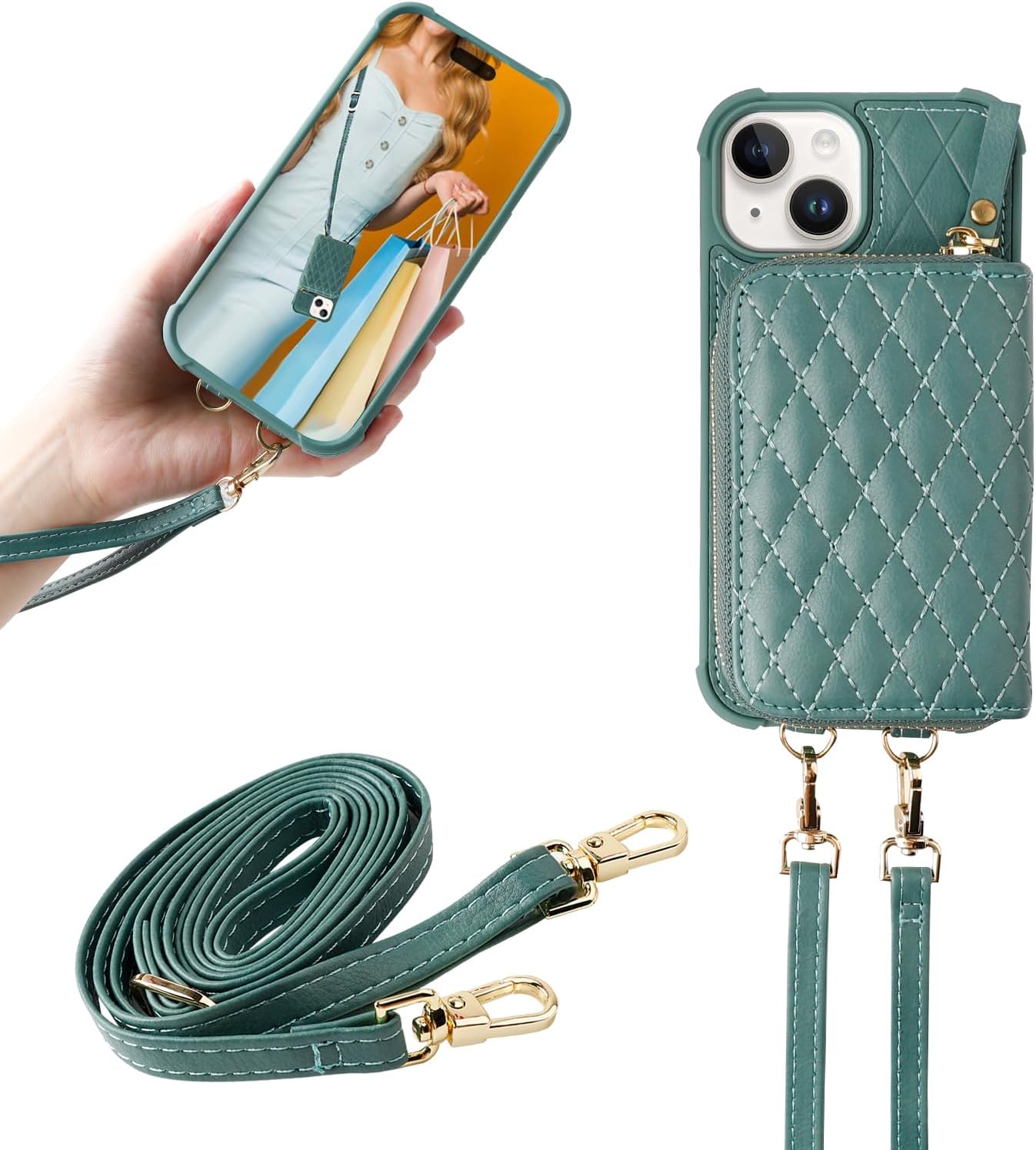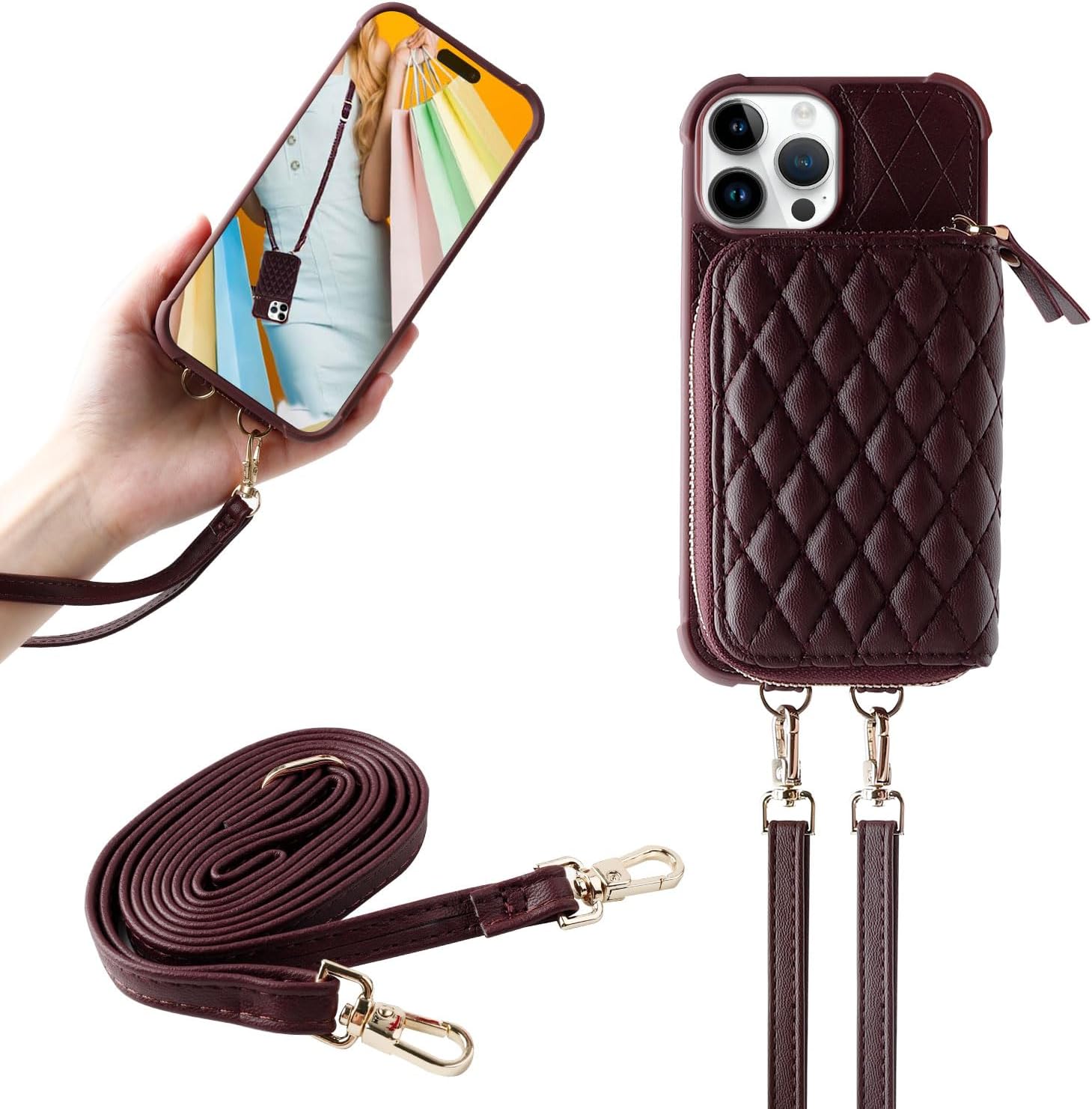 Product Description: The MONASAY crossbody zipper wallet case fit for Apple iPhone 15 Pro is made of premium quality leather and full-body bump-resistant materials, with precise cutouts that fit your phone perfectly and provide a thoughtful protection for your iPhone. Let you have fun while shopping, walking the dog, biking, outdoor activities. Features: The beautiful rhombus -shaped look expresses individuality, style and elegance. Handbag with lanyard wrist strap, detachable and adjustable length for hands free. RFID blocking purse case for cash,keys, coins , cards. Anti-collision and anti-drop design provides full body protection. A stand for watching movies and reading, video chatting. Precise cutouts for all ports make use easier and faster. Package Includes: 1x Leather phone cover fit for iPhone 15 Pro. 1x Screen Protector fit for iPhone 15 Pro. 1x Unique packaging box. Note: Compatible for iPhone 15 Pro, not Fit for any other phone models. Reliable Worry-free service: 60-Day money back assurance and 365-Day friendly customer service.