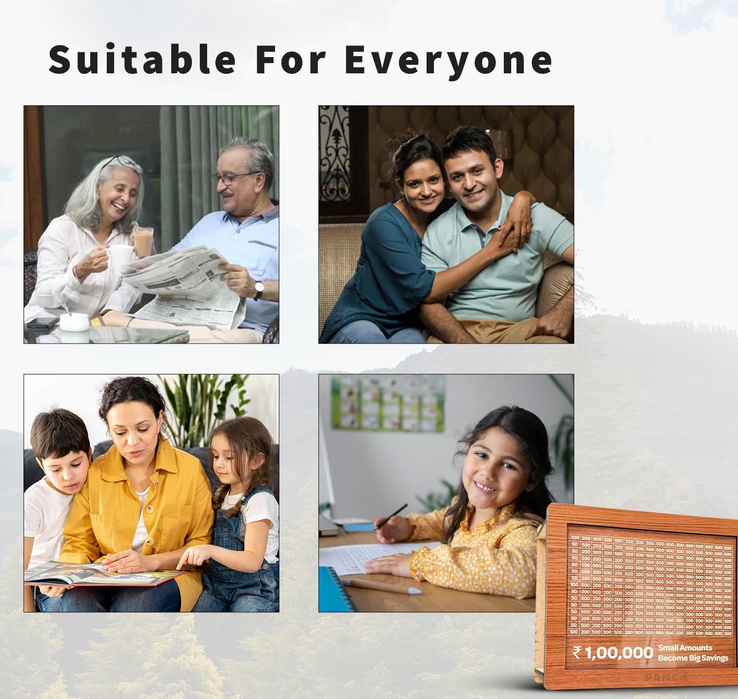 **PANCA Wooden Money Saving Piggy Bank – Your Ultimate Savings Companion** The PANCA Wooden Money Saving Piggy Bank is a stylish and functional solution for achieving your financial goals. Designed for adults, men, women, and kids, this big-size gullak can hold up to 1 lakh, making it perfect for saving Indian rupees for future needs. Crafted from high-quality wood, this money-saving box combines durability with elegance, making it a fancy addition to your home or office. Featuring a unique digital grid counter, this piggy bank helps you track your savings effortlessly. Whether you’re saving small amounts to grow big or aiming for a 1 lakh challenge, this wooden money-saving box ensures you stay on track. Its secure design, complete with a house key lock, keeps your cash, coins, and treasures safe, making it a reliable vault for your savings. Ideal for girls, boys, and adults, the PANCA Piggy Bank is more than just a savings tool—it’s a mini treasure chest that encourages financial discipline. Use it as a hundi for special occasions like Vishu or as a daily savings challenge. Compact yet spacious, this gulak is perfect for turning small savings into big dreams. Choose the PANCA Wooden Money Saving Piggy Bank for a supreme cash-saving experience. Whether for personal use or as a thoughtful gift, this piggy bank is your key to financial success!
