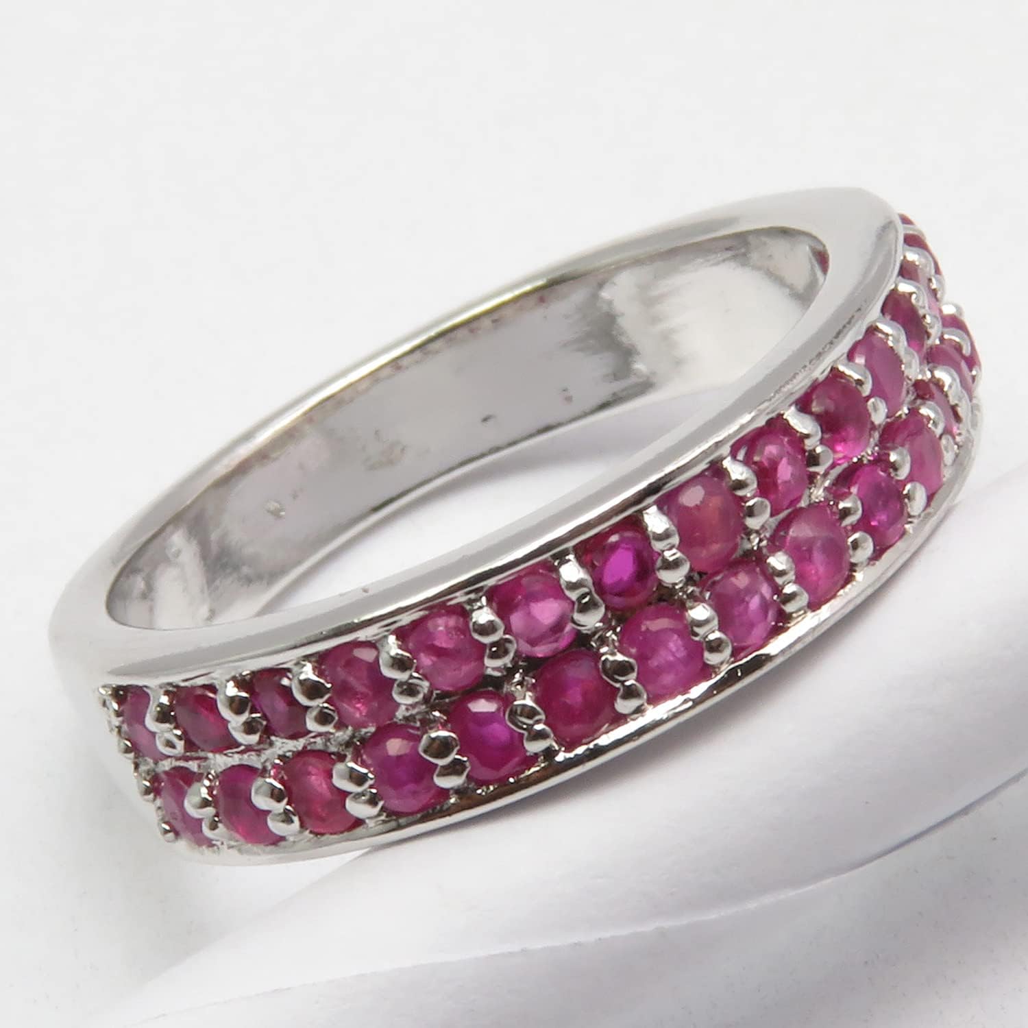 SilverStarJewel 925 Solid Sterling Silver Stylish Ring Band Red Ruby Multistone Engagement Gift July Birthstone Size 5 to 9