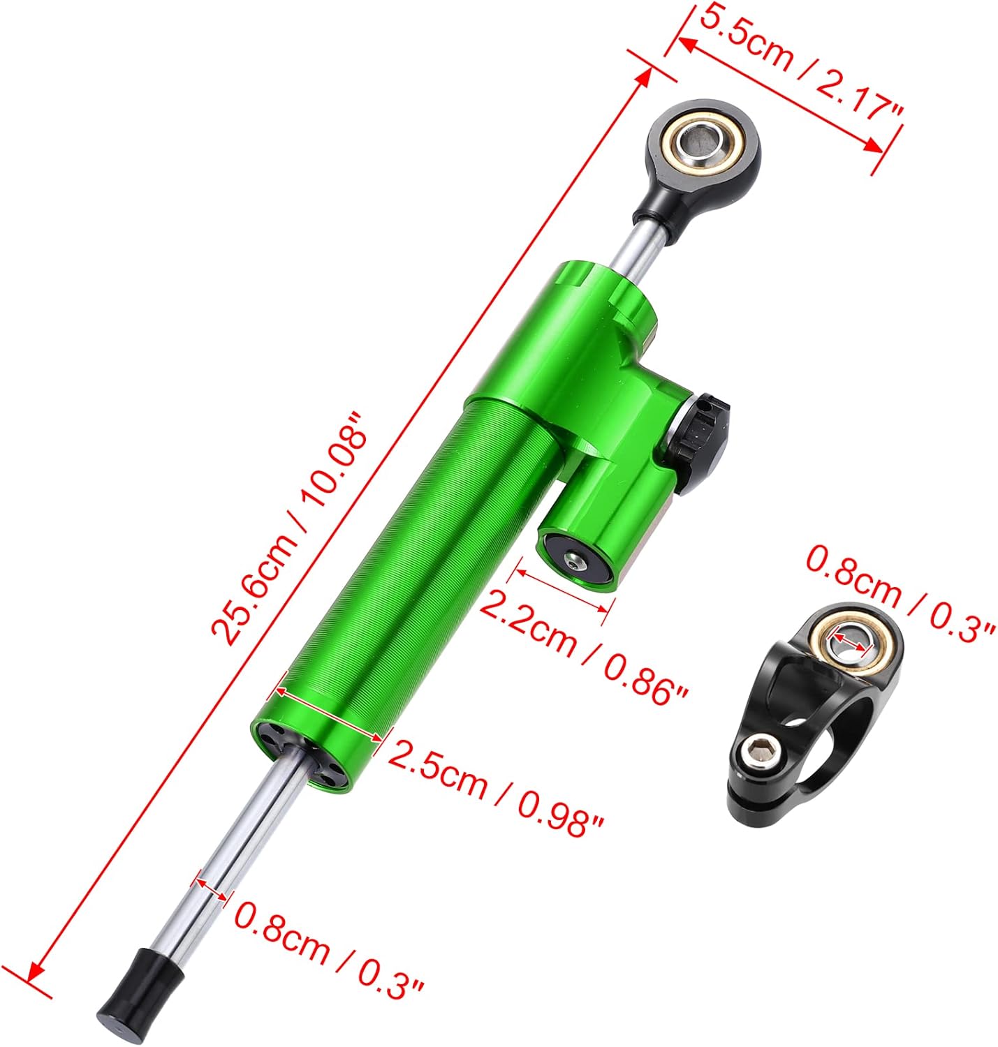 Description:Made of good quality aluminum alloy with CNC surface finished, it's durable and anti-oxidation.Utilizes speed sensitive technology to keep stable control.Easy to install, no need any modifications.Specification:Material: Aluminium AlloyColor: GreenSurface Finish: CNC FinishedPosition on Bike: Top mountSize: 25.6x5.5cm / 10.08"x2.17"(L*W)Fitment:Universal fit for most motorcycles, example for Honda for Yamaha for BMW for Suzuki and more.Highly recommend to install the bike that is over 600CC.Package Include:1 x Steering Damper Stabilizer (Not including mounting kit)