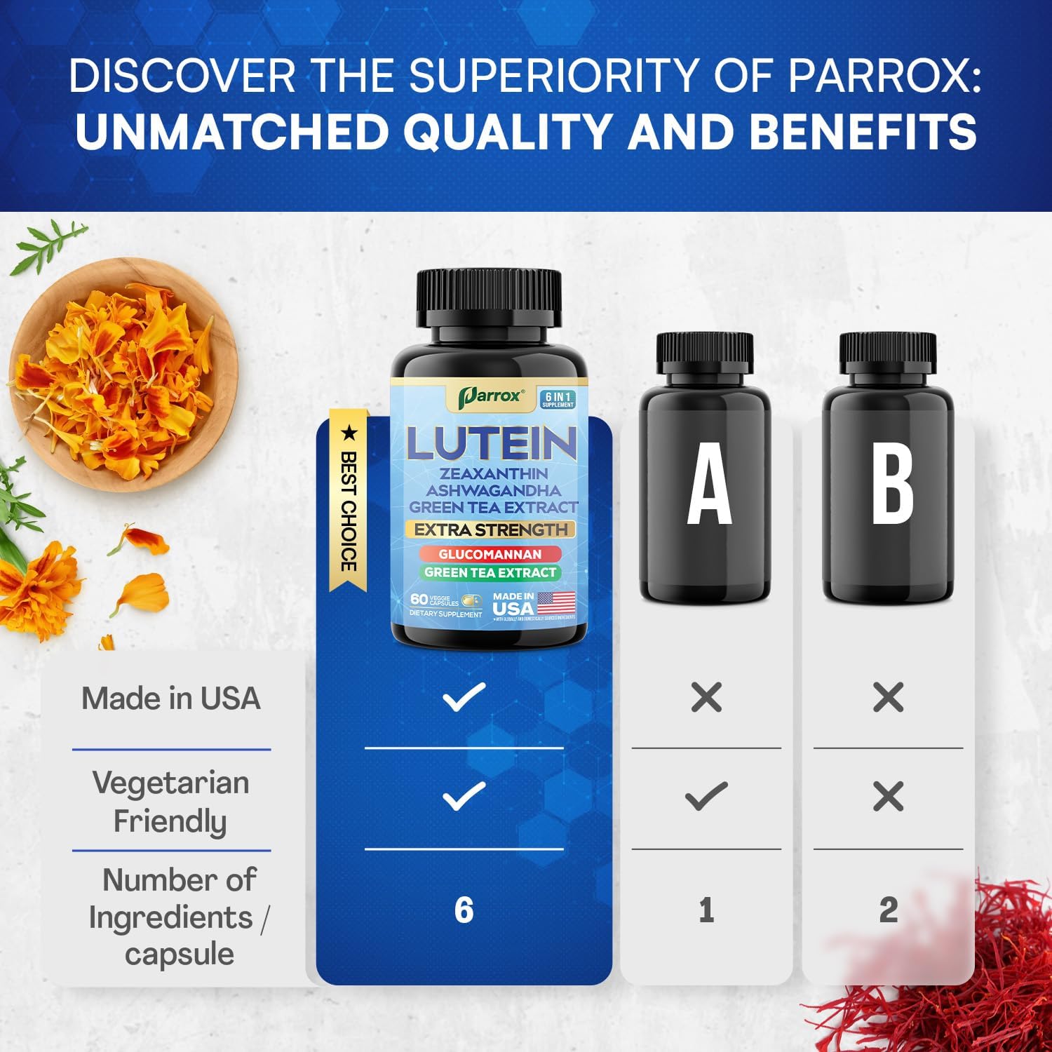 The Parrox Myo Inositol & Lutein Bundle offers a dual approach to daily wellness with two complementary formulas in one simple set. The 16-in-1 Myo Inositol Complex blends myo-inositol, D-chiro inositol, DIM, berberine, chasteberry, and essential vitamins and minerals for hormonal balance, energy, and metabolic support. Paired with the 6-in-1 Lutein formula, which includes lutein, zeaxanthin, saffron, and green tea extract, this bundle provides additional support for visual clarity, focus, and overall vitality. Together, these clean, capsule-based supplements simplify supplementation while aligning with a balanced, health-conscious lifestyle.