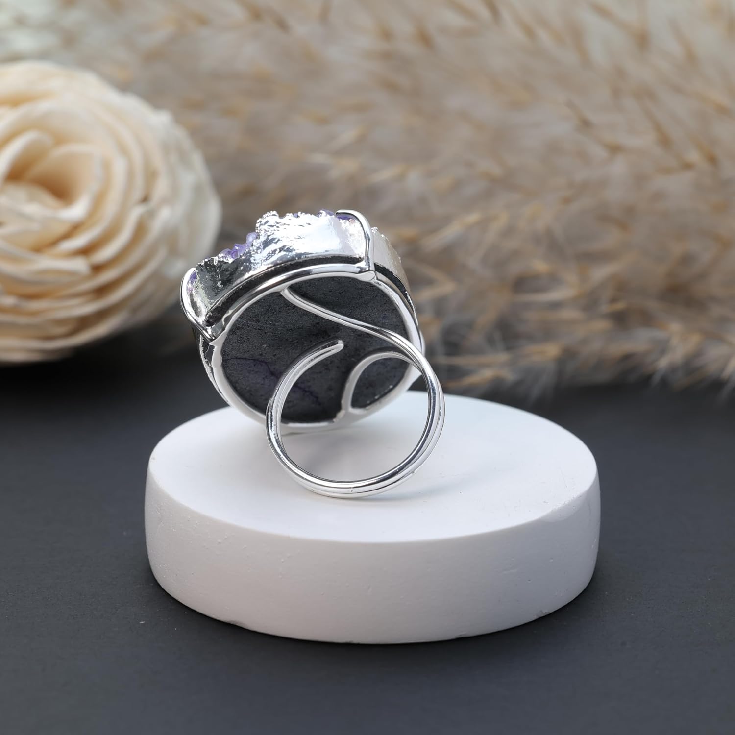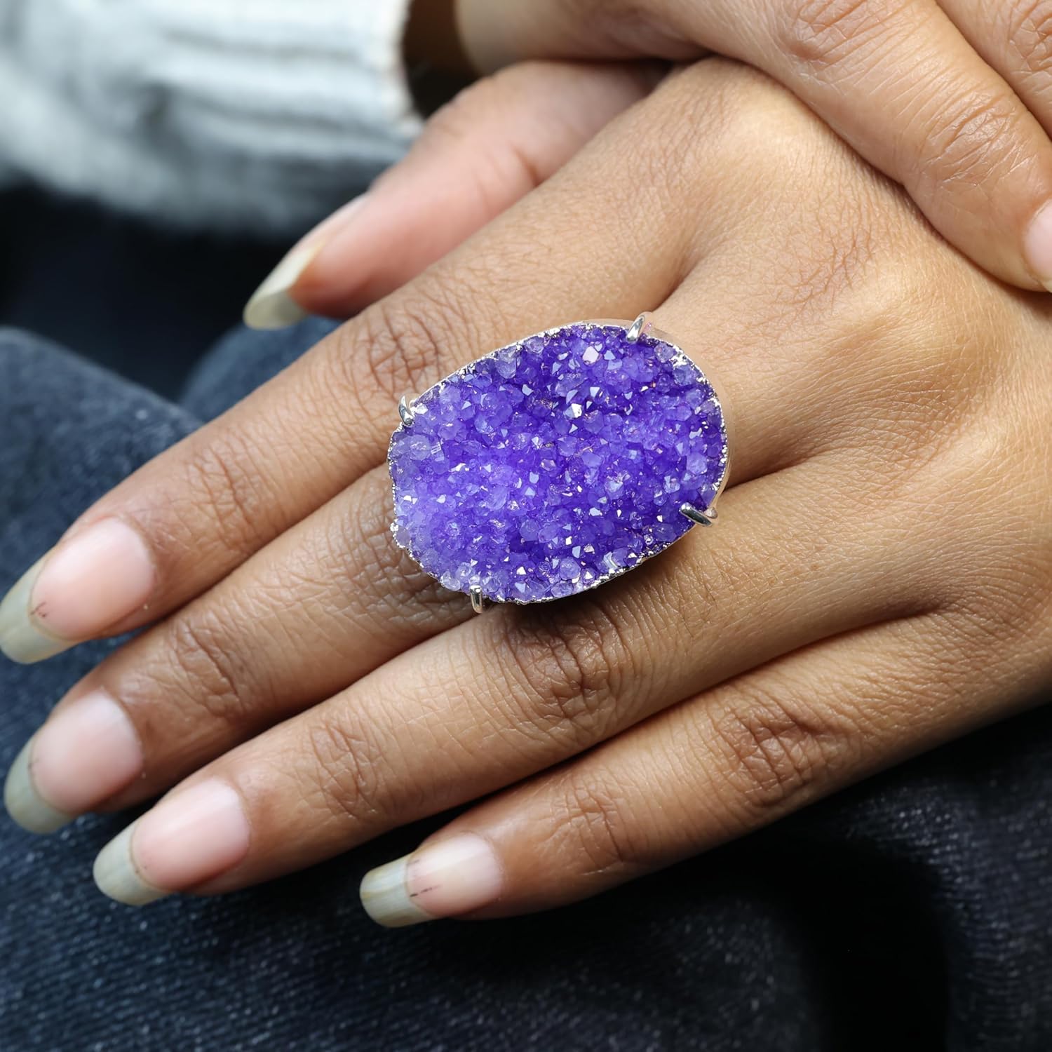 This Natural Agate Geode Quartz Oval Crystal Druzy Ring is a beautiful piece of jewelry that is perfect for both men and women. The ring is made from high-quality agate geode quartz, which is known for its stunning natural patterns and colors. The oval crystal Druzy stone is set in a silver-tone metal band, which adds a touch of elegance to the ring. The ring is available in a variety of sizes, so you can choose the perfect fit for you. Whether you are looking for a gift for someone special or a new addition to your jewelry collection, this Natural Agate Geode Quartz Oval Crystal Druzy Ring is sure to impress.