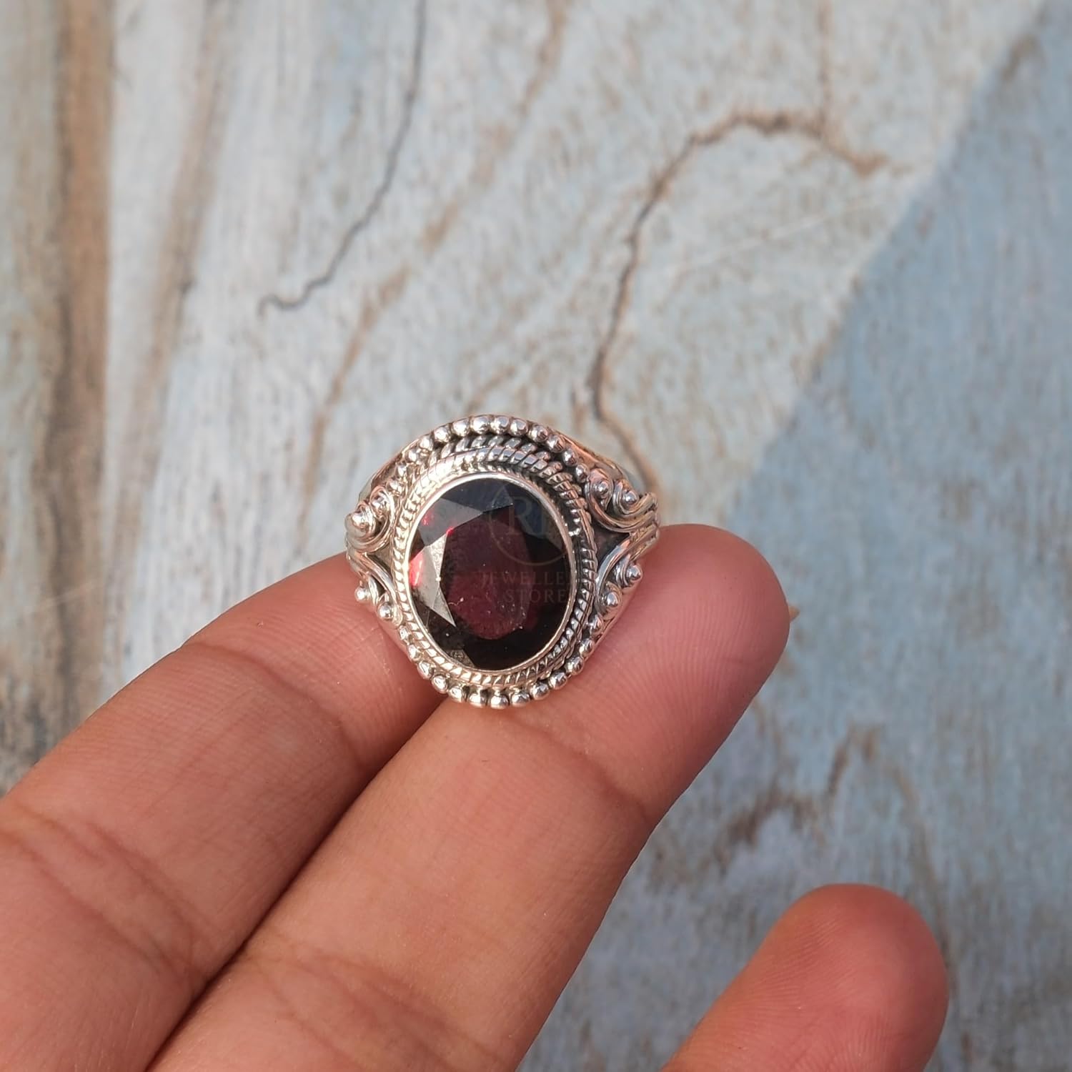 This handmade boho stacking ring features a natural red garnet gemstone set in 925 sterling silver, designed to bring a warm, elegant touch to everyday wear. The rich red hue of the garnet pairs beautifully with the clean silver finish, making it easy to wear alone or stack with other rings. Crafted by skilled artisans, the ring reflects a timeless bohemian style that suits casual looks as well as special occasions. A thoughtful choice for gifting, this garnet ring adds subtle color and character to any jewelry collection.》Product Details:- Product - Ring Metal - 925 Sterling Silver Stamp - 925 Gemstone - Red Garnet Gemstone Color - Red Gemstone Treatment - No Treatment (Natural) Product Weight - 8.00 Approx 》About Product:- Our products are completely handmade and made of pure 925 sterling silver and natural gemstones, so don't worry about the product, 100% customer satisfaction guaranteed. 》Problem Resolution:- Customer satisfaction is my top priority so if you have any questions or facing any problem, please feel free to contact us anytime. We will resolve your issue within 24 hours. Thank you for visiting my shop.