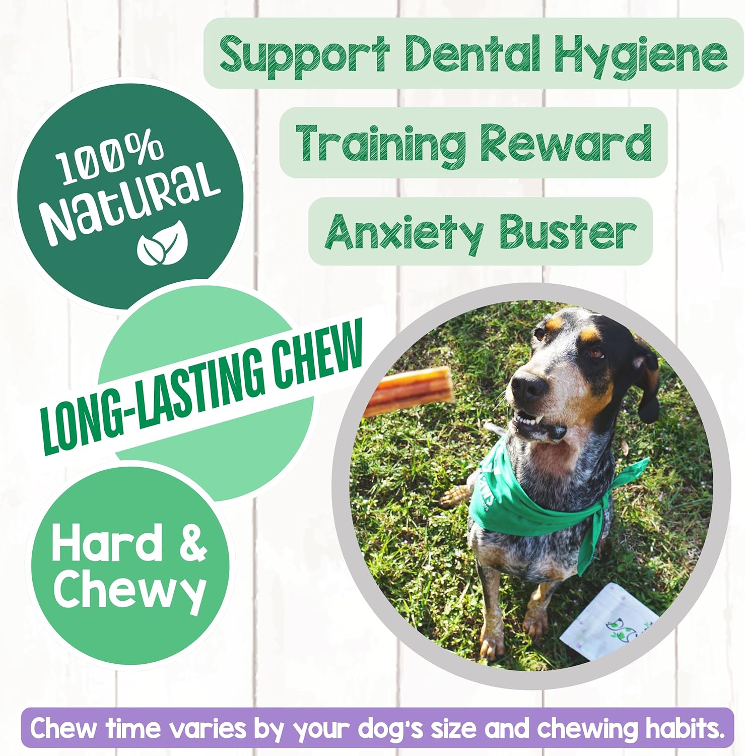 Made with natural premium quality beef pizzle, our Large Bully Sticks are ideal to keep your beloved pup busy and calm. These natural chews are perfect for teething puppies, aggressive chewers, medium and large dogs. Nature Gnaws Bully Sticks are low-odor, grain-free and gluten-free, making them the perfect natural alternative to rawhide bones and manufactured dental chews. Savory snack, the natural act of chewing helps reduce plaque and tartar for cleaner teeth and fresher breath. Promoting overall good dental hygiene, these bully chews are an excellent choice for your pet. Our Beef Chews have a savory thick texture that is the perfect reward to occupy and entertain. Your dog will love the natural scent and tasty beef flavor of our chews. As a family-run business, we are dedicated to providing 100% natural dog chews, bones and treats made with responsibly sourced ingredients to ensure they are the best simple, natural, and delicious products for your beloved pups.