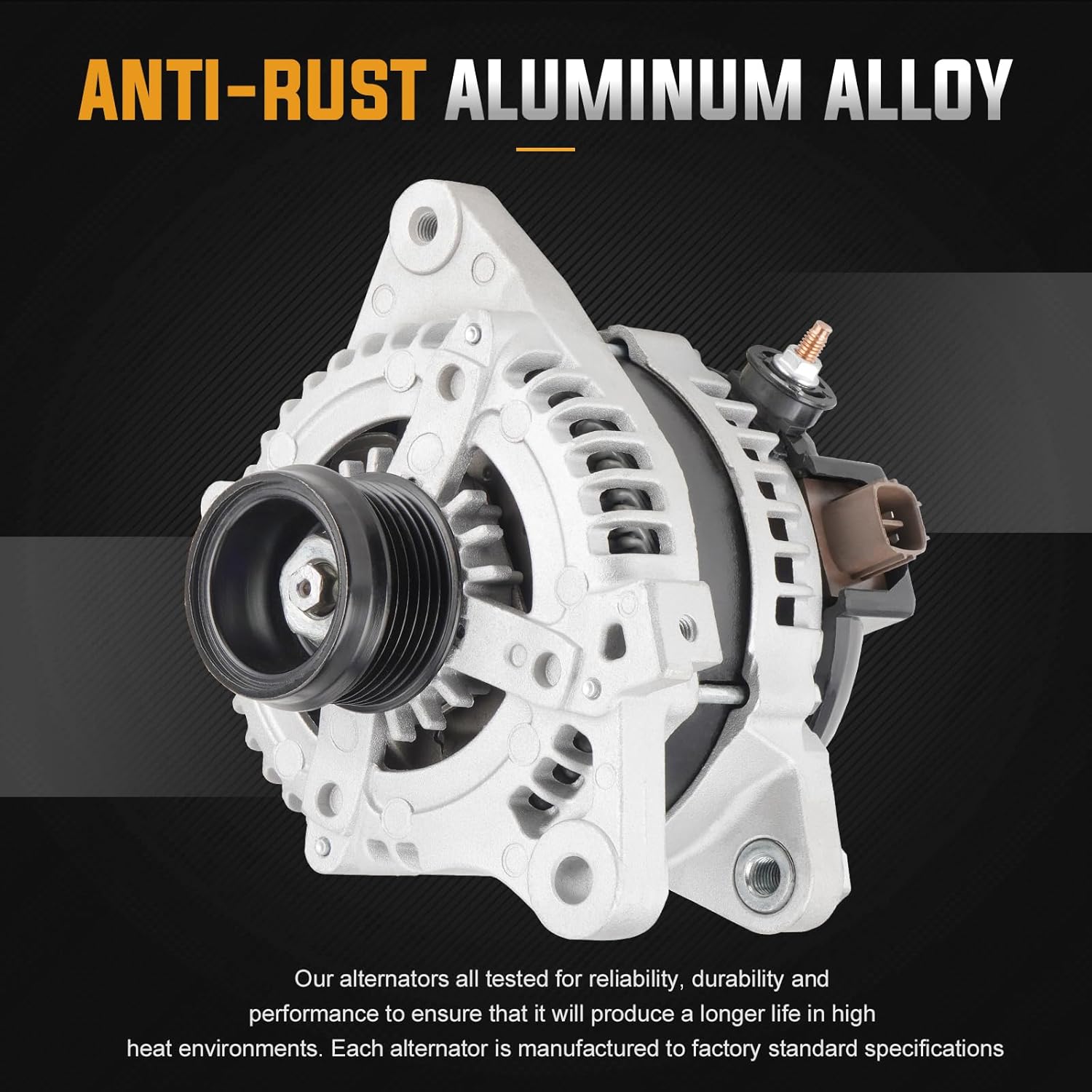 Compatible with:2009 Toyota Corolla 1.8L ((Mfd in Janpan, VIN L, VIN U)2010 Toyota Corolla 1.8L (Mfd in Janpan)2011 Toyota Corolla 1.8L (for vehicle built in Janpan)2012 Toyota Corolla 1.8L (for vehicle built in Janpan)2013 Toyota Corolla 1.8L (for vehicle built in Janpan)2008 Scion xD 1.8L2009 Scion xD 1.8L2010 Scion xD 1.8L2011 Scion xD 1.8L2012 Scion xD 1.8L2013 Scion xD 1.8L2014 Scion xD 1.8LItem Specifications:DESIGN: IR/IFVOLTAGE: 12AMPERAGE: 100ROTATION: CWPULLEY CLASS: 6-Groove Clutch PulleyReplacement:104210-2800, 104210-2801, 104210-2802, 104210-5480, 104210-5481, 104210-5490, 104210-5491, GM 88975507, 27060-37040, 27060-37041, 27060-0T040, 27060-0T041, 27060-0T041-84, 27060-37040, 27060-37041, 27060-37081