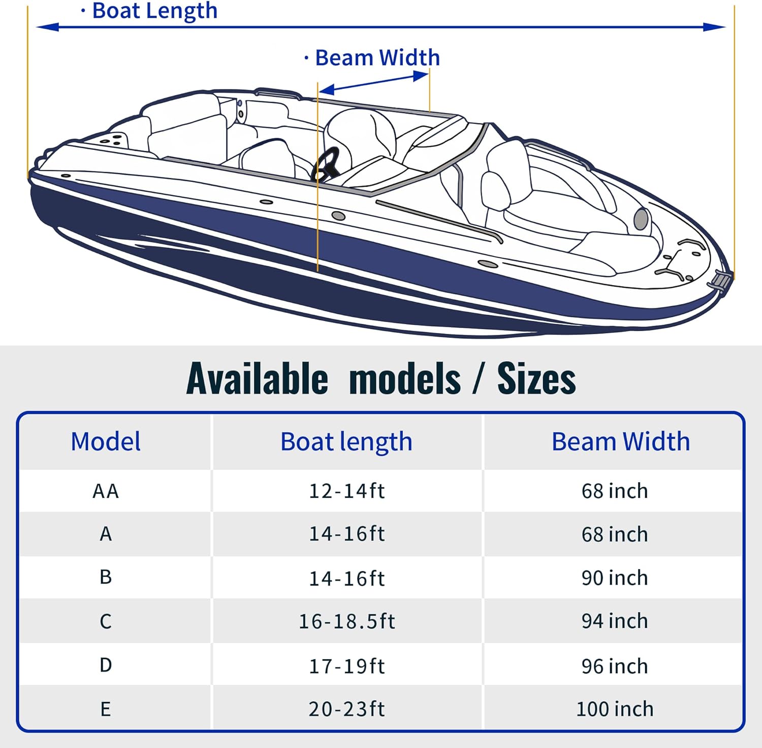| Coverage | Full exterior coverage for trailerable boats (16’-18.5’ length, beam width up to 94’) including V-HULL fishing boat, V-hull runabout, bass boat, Fish&Ski, Pro-style bass boat |