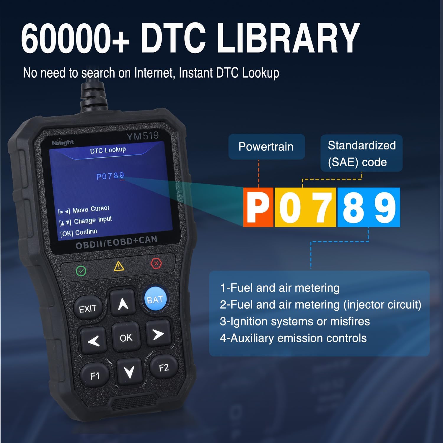 | Included Components | Nilight YM519 OBD2 Scanner |