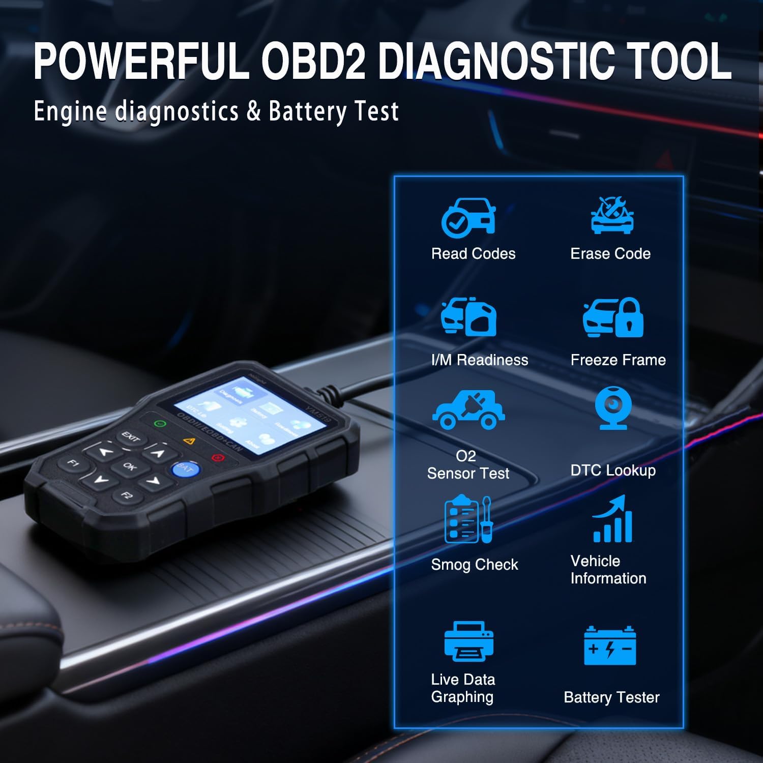 Description: Designed for maximum visibility, the Nilight YM519 features a massive 2.8-inch display that makes engine diagnostics effortless for any user. It balances robust hardware with comprehensive scanning power