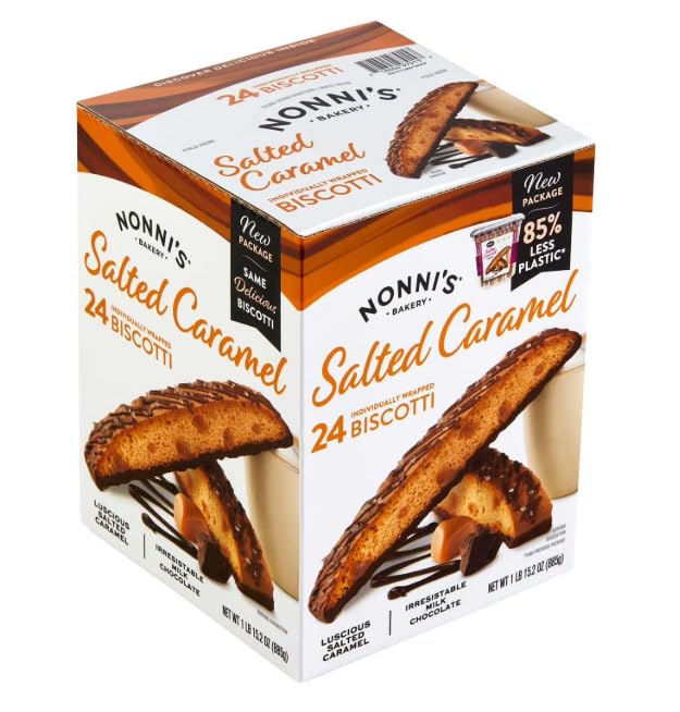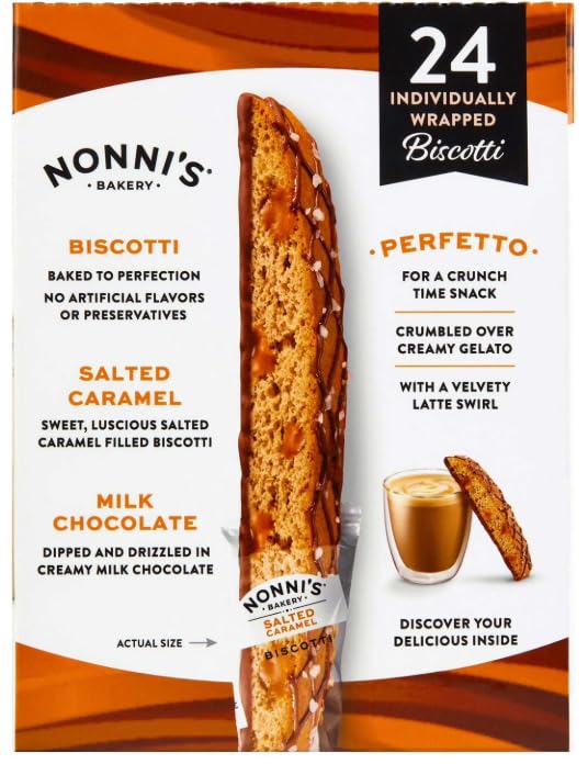 Delicious Biscotti dipped in real milk chocolate and baked with luscious salted caramel Dipped in creamy irresistible milk chocolate Packed with luscious caramel bits Baked for the Perfect Crunch!