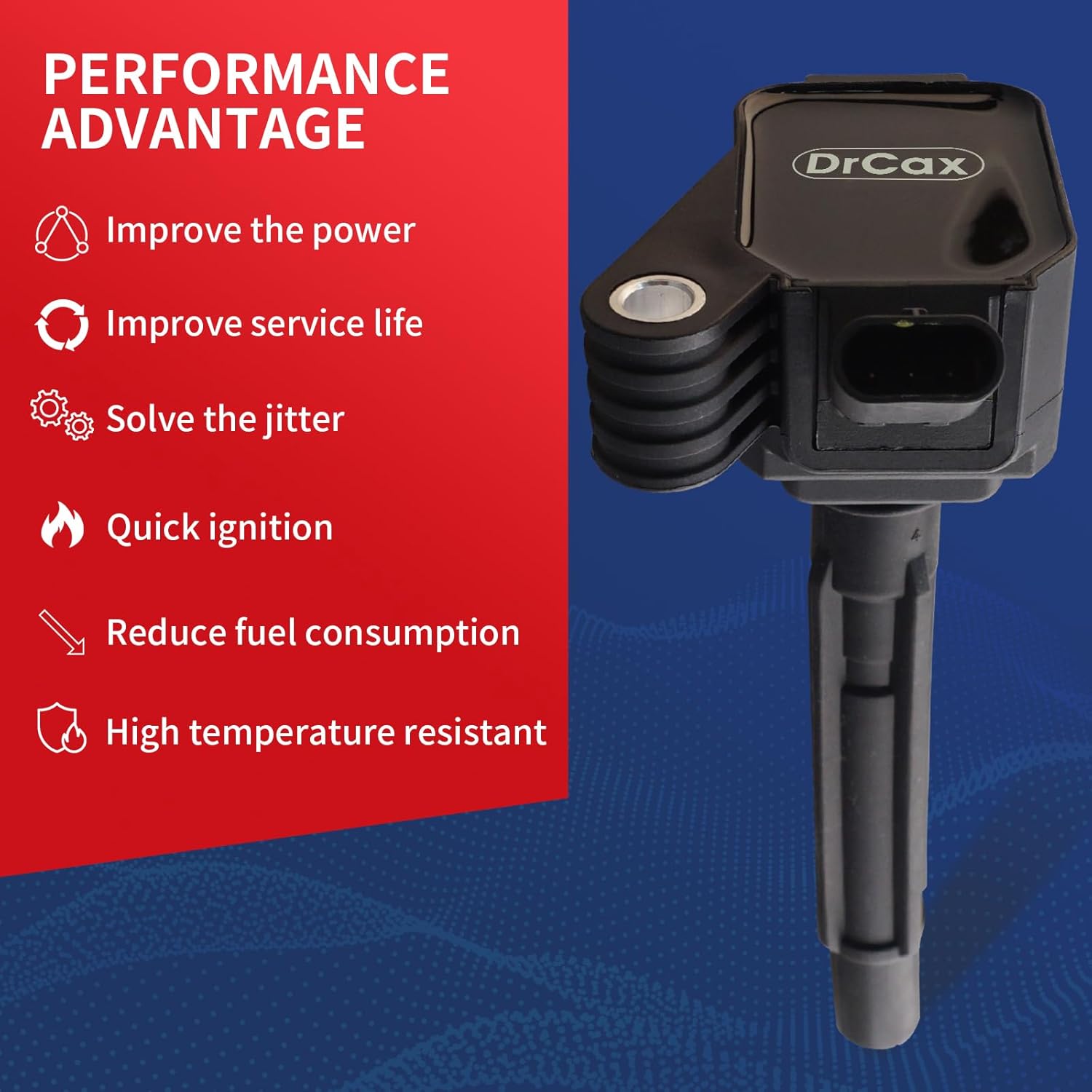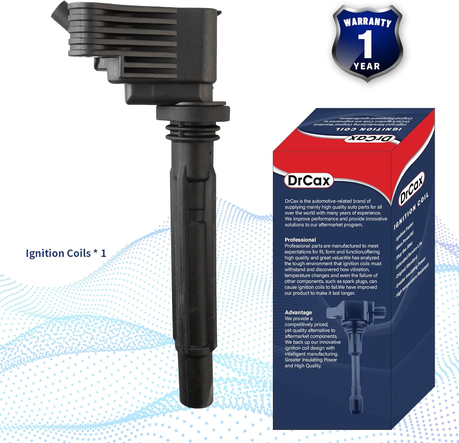 ALL ITEMS ARE BRAND NEW Package Including: 1 x New Ignition Coil Common Symptoms of a Faulty Coil Pack: A rough idle A noticeable lack of power An unexplainably louder-than-usual engine A significant drop in RPMs while accelerating for no apparent reason A blinking or intermittently activating check engine light An active gas warning light when the vehicle has plenty of gasoline Smoke from the exhaust emitting intermittently, instead of in a steady stream If your car has the above symptoms, it is highly recommended to replace the ignition coil in time for your driving safety. Why Choose Our Coils? 100% Factory tested Ready to use, Direct Replacement Built to strict quality control standards Use highest grade material with OE+ durability Durable and reliable under extreme conditions while Provide high Electrical, Corrosion, and Abrasion Resistance Part Numbers: 68211953AA 50050430 K68211953AA 7805-1366 GN10955-11B1 UF839 Applications and Compatability Compatible with Alfa Romeo: 2017-2018 Giulia 2.0L L4 2018-2018 Stelvio 2.0L L4 Compatible with Jeep: 2019-2020 Cherokee 2.0L L4 2018-2019 Wrangler 2.0L L4 About Us DrCax are automotive-related brand,supplying mainly high quality auto parts for all over the world.Experienced in OEM service and Tuning parts for years.