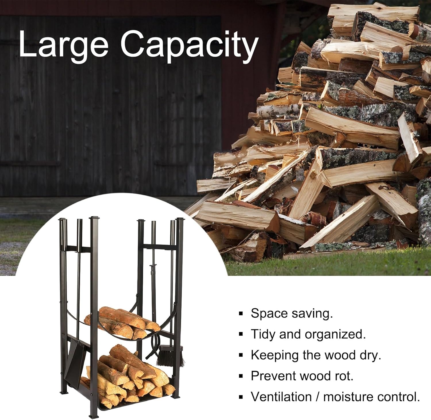 This iron firewood storage rack stores firewood neatly by the fire pit or fireplace.Package Content:1 × Firewood RackOther Mounting AccessoriesSpecificationMaterial: Iron ArtSize ( Length x Width x Height ): 45cm (17 3/4") x 30cm (11 3/4") x 76cm (29 7/8")Color: BlackFeaturesEasy to clean and maintain.Keep firewood neat and organized.Saving your space well but large capacity.Easy to install and use.Surface-lacquer, waterproof, and rustproof.CautionsThere may be an error due to manual measurement.Due to light problems, there will be a small color difference, subject to the real thing.Good ServiceWe are committed to providing quality services to our clients. Feel free to contact us if you have any issues with your order; we will solve them for you in time.