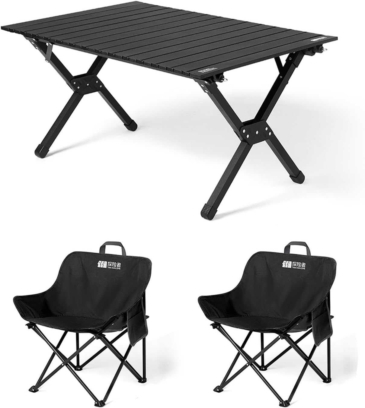 Welcome to my shop~This foldable camping table is made of thickened carbon steel and Oxford cloth, offering strong load-bearing capacity, durability, and sturdiness. The accompanying chairs are sturdy and durable, and feature side pockets. The wide, matte surface is scald- and scratch-resistant, making it perfect for gatherings and conveniently placing items, making it an ideal choice for outdoor gatherings.This camping table and chairs are easy to store, and the tabletop can be rolled up and folded, making it lightweight and portable, saving space. Its sturdy construction, coupled with a variety of latches, thickened fasteners, and non-slip footrests, makes it a versatile and practical companion for all types of outdoor enthusiasts.- Name: Outdoor Folding Table and Chair Set- Color: Khaki, Black- Material: Carbon Steel, Oxford Cloth- Table Dimensions: 90*60*46cm/35.4*23.6*18.1in, 120*60*46cm/47.2*23.6*18.1in, 151*69*45cm/59.4*27.2*17.7in(unfolded), 82*20*15cm/32.3*7.9*5.9in,70*22*17cm/27.6*8.7*6.7in, 78*28*22cm/30.7*11*8.7in (folded)- Style A (Regular Chair Dimensions): 47*47*67cm/17.7*17.7*26.4in(unfolded) 69x17x17cm/27.2x6.7x6.7in(folded)- Model B (booster chair dimensions): 47x47x91cm/17.7x17.7x35.8in(unfolded), 94x16x16cm/37x6.3x6.3in(folded)- Suitable for a variety of outdoor occasions: camping, picnics, family outings, garden parties, RV vacations, hiking, fishing, barbecues, travel, and parks.- Includes: folding camp chair, folding table, and carrying/storage bag.Safety Warning:When used outdoors, the chair must not exceed a weight limit of 100 kg, and the table must not exceed a weight limit of 75 kg. Ensure the table is properly installed and secured.