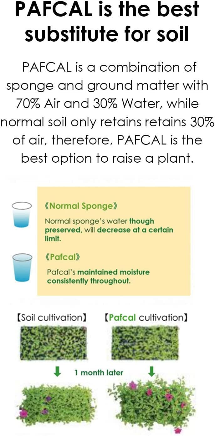 New Japan soilless technology – PAFCAL PAFCAL is an organic product, made with the latest technology from Toyota Suntory Company which aim is to create a greener environment. The beauty of this product is it’s recyclable and sustainable. A test was conducted in Japan to prove its lifespan of 10 years and its non-flammable, with success. With PAFCAL, you are now able to have your own pot of plant instantly, instead of going through the process of planting a pot at home which requires a lot of time and effort. Besides, you do not have to worry about not watering them at the right time. If you’re busy with work schedule or do not have the time to take care of the plants, but you would like to have one, PAFCAL is the right choice for you. – “Soil-Free Fuss Free”. PAFCAL Benefits PAFCAL is a ground-breaking material invented by Toyota Suntory Company of Japan. Pafcal is a combination of sponge and ground matter with 70% Air and 30% Water, while normal soil only retains retains 30% of air, therefore, PAFCAL is the best option to raise a plant. These are the benefits of owning a PAFCAL than regular soil. Project Objective – How did we plant it so successfully? PAFCAL provides the best balance for any plants. PAFCAL has a 70% Air and 30% Water. With that much of Air, it gives a lot of space and room for plants to grow within PAFCAL. PAFCAL is a combination of sponge and organic matter, hence, it has a very long lifespan of 10 years, recyclable, and sustainable. Soil-Free. Fuss Free. Pafcal is the lightest among the soil substitutes, hence is widely used in vertical gardening. It is not only suitable for outdoor use but also an easy and accessible planting material for houseplants due to its clean and hygienic characteristics of your plant. Packing Weight: 1kg.