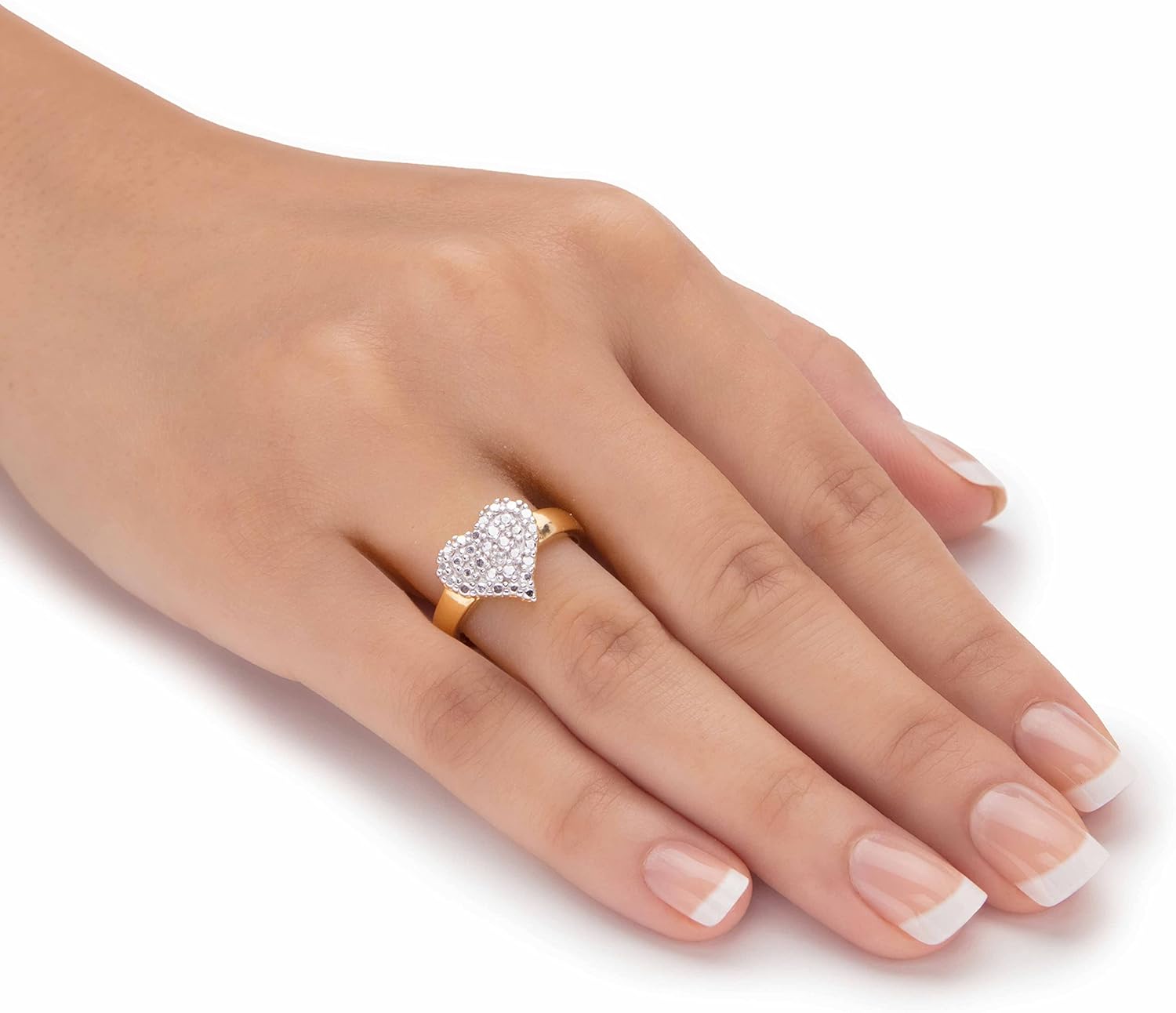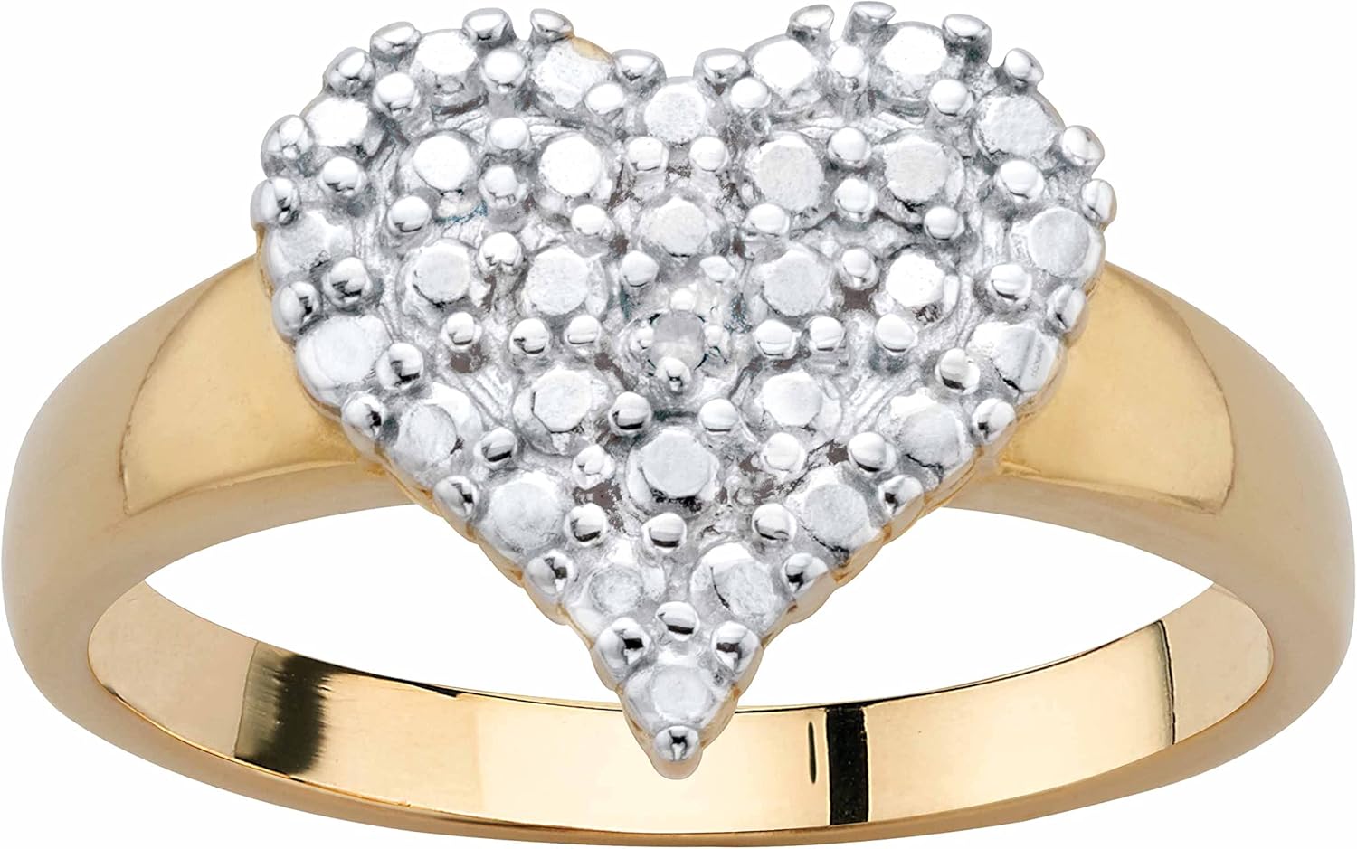 A beautiful expression of love and romance, this heart-shaped ring is a lovely gift for yourself or someone special. A sparkling diamond accent is set in the stippled heart set against a polished golden band. Sure to become a treasured keepsake. Gold-plated. Sizes 6-10. - 63872