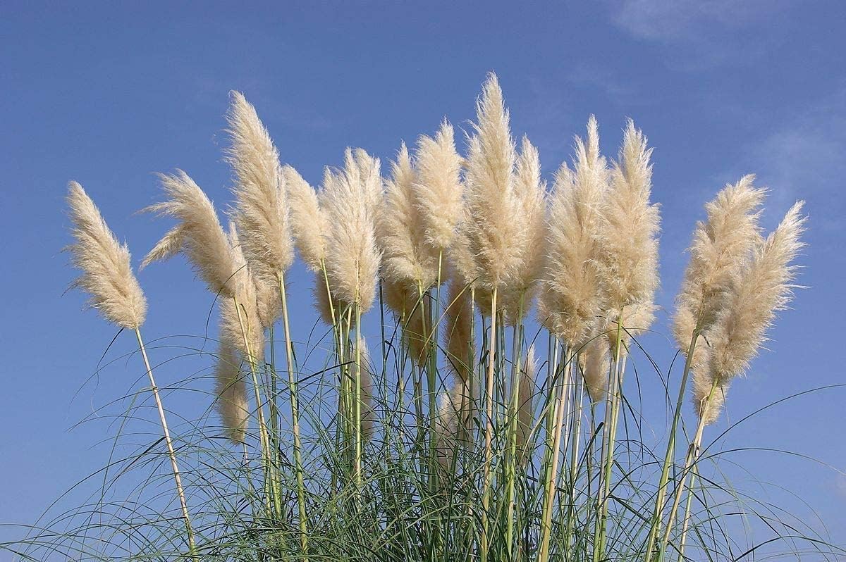 Pampas grass requires a lot of room to look its best. Spot into far focal points in more expansive landscaping. Makes a solid wind barrier or visual hedge in difficult locations too daunting for less rugged plants. Exceptional with desert and Mediterranean style architecture, and was a common site in the American Victorian garden. Pampas grass plumes are highly prized for indoor floral arrangements. Harvest flowers as soon as they have fully emerged, but before they are mature and shedding. They can be used in dried arrangements immediately after harvesting or dried for later use. Spray the plumes with hair spray before using them in arrangements to help prevent shedding. Ornamental grass with showy, white 30-inch plumes held above narrow, sharp-edged foliage that forms large clumps. Good, natural-looking screen/windbreak or landscape accent. Flowers can be dried. Follow a regular watering schedule during the first growing season to establish a deep, extensive root system. Watering can be reduced after establishment. Feed with a general purpose fertilizer before new growth begins in spring. Pruning time: winter. Follow a regular watering schedule during the first growing season to establish a deep, extensive root system. Watering can be reduced after establishment. Feed with a general purpose fertilizer before new growth begins in spring. Pruning time: winter.