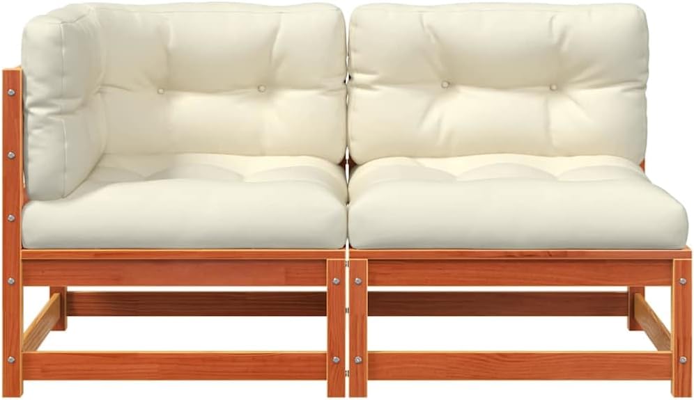 This rustic loveseat is spot on for making your outdoor spaces better, mixing comfort and style. Made from solid pine wood and featuring weather-resistant cushions, it's perfect for a chat or relaxing with your friends on the balcony or patio.Modular Design: This loveseat can switch things up easily to fit your outdoor space, whether you've got a big garden or a little balcony, ensuring everyone’s comfy.Weather-Resistant Cushions: The cushions made from strong Oxford fabric are designed to handle outdoor conditions. Plus, they're easy to clean with their removable zipper closures.Sturdy Frame: Built with solid pine wood, this loveseat is tough and stable. Its sleek design gives ample support, so you can have guests over without worrying.Charming Aesthetic: The wax brown finish, paired with cream cushions, gives a lovely rustic touch that'll spruce up any garden or patio. This loveseat is a real eye-catcher for your outdoor setup.Comfortable Seating Capacity: Fits two nicely, making it perfect for chats or just chilling alone. With its deeper seating and soft cushions, you can kick back comfortably for ages. Number Of Items: 2Color: BrownShape: RectangularMaterial: Solid Pine woodFinish: WaxedIndoor/Outdoor: Outdoor OnlyCover Included: NoRoom: Garden and terraceCapacity: 242.5Maximum Number of People: 2Maximum Weit: 535.5 lbsDimensions: 55.1 x 27.6 x 26.4 in. (W x L x H)Weight: 53.46 lbsSeat Depth: 25.0 in.Seating Capacity: 2Swings: NoDelivery Contains: 1 x Corner sofaAssembly Required: YesRecommended Number of People for Assembly: 1