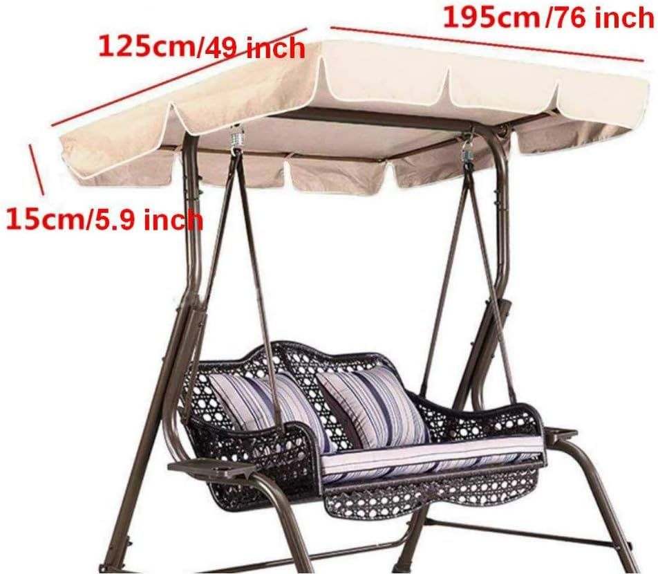 There is a variety of styles of waterproof dust-proof cover in this shops, Welcome To Buy!!! Description: The Patio Swing Canopy Replacement Waterproof Top Cover is a water-resistant cover that protects your patio furniture and also makes moments spent with family and friends more convenient and easier than ever Saving you from dragging your furniture into the garage or wiping it down before every use. Specification: Type: Swing Canopy Top Cover Material: 190T silver-coating polyester taffeta Available Size: 98x72x7 inch 76x49x5.9 inch 75x52x5.9 inch 65x45x5.9 inch 55x47x7 inch Available Color: Gray,Dark Green,Beige,Red,Black,Brown Package included: 1 x Swing Canopy Top Cover 1 x Storage Bag Notes: 1. Due to the light and screen difference, the item's color may be slightly different from the pictures. 2. Please allow 1-3cm differences due to manual measurement.