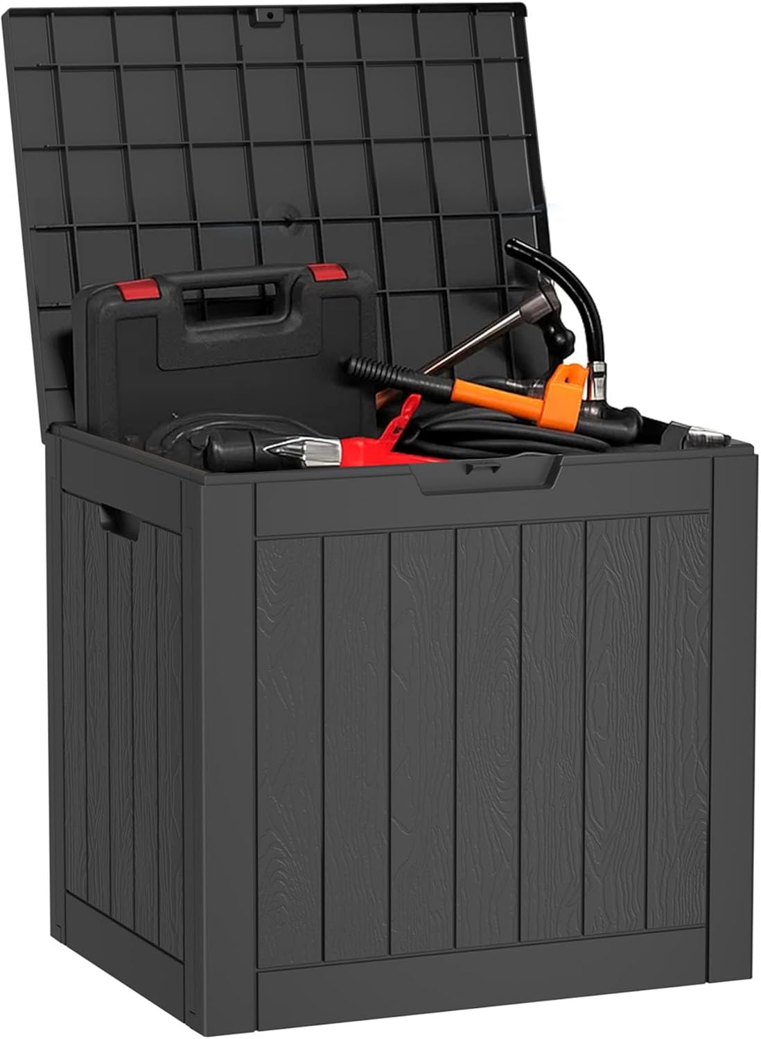 Featuring a durable resin construction, this PatioZen Deck Box offers ample outdoor storage space. The hydraulic rod allows for easy opening and closing of the lockable lid, ensuring your items are safe and secure. Designed to be waterproof and UV resistant, it's perfect for protecting patio cushions, gardening tools, and sports equipment from the elements.