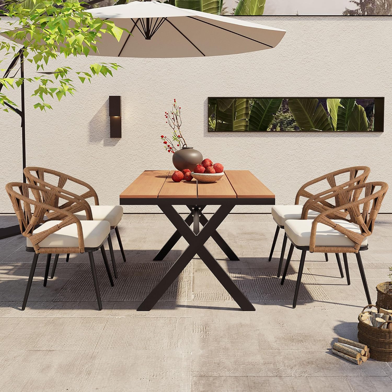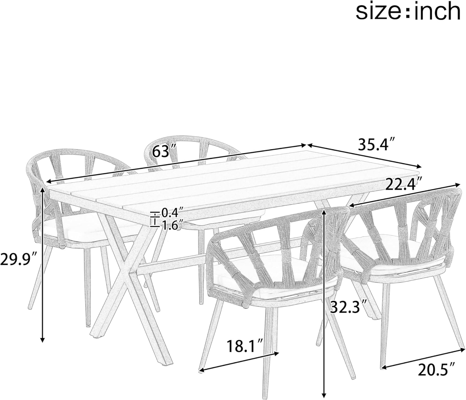 SpecificationsItems Included 1 Table+4 Single ChairTable Material Plastic Wood+IronChair Material HDPE+IronTable Top Weight Capacity 352 lbsSingle Chair Capacity 265 lbsSingle Chair Net Weight 19.8 lbsTable Net Weight 82.72 lbsSupplier Intended and Approved Use Residential UseCountry of Origin China