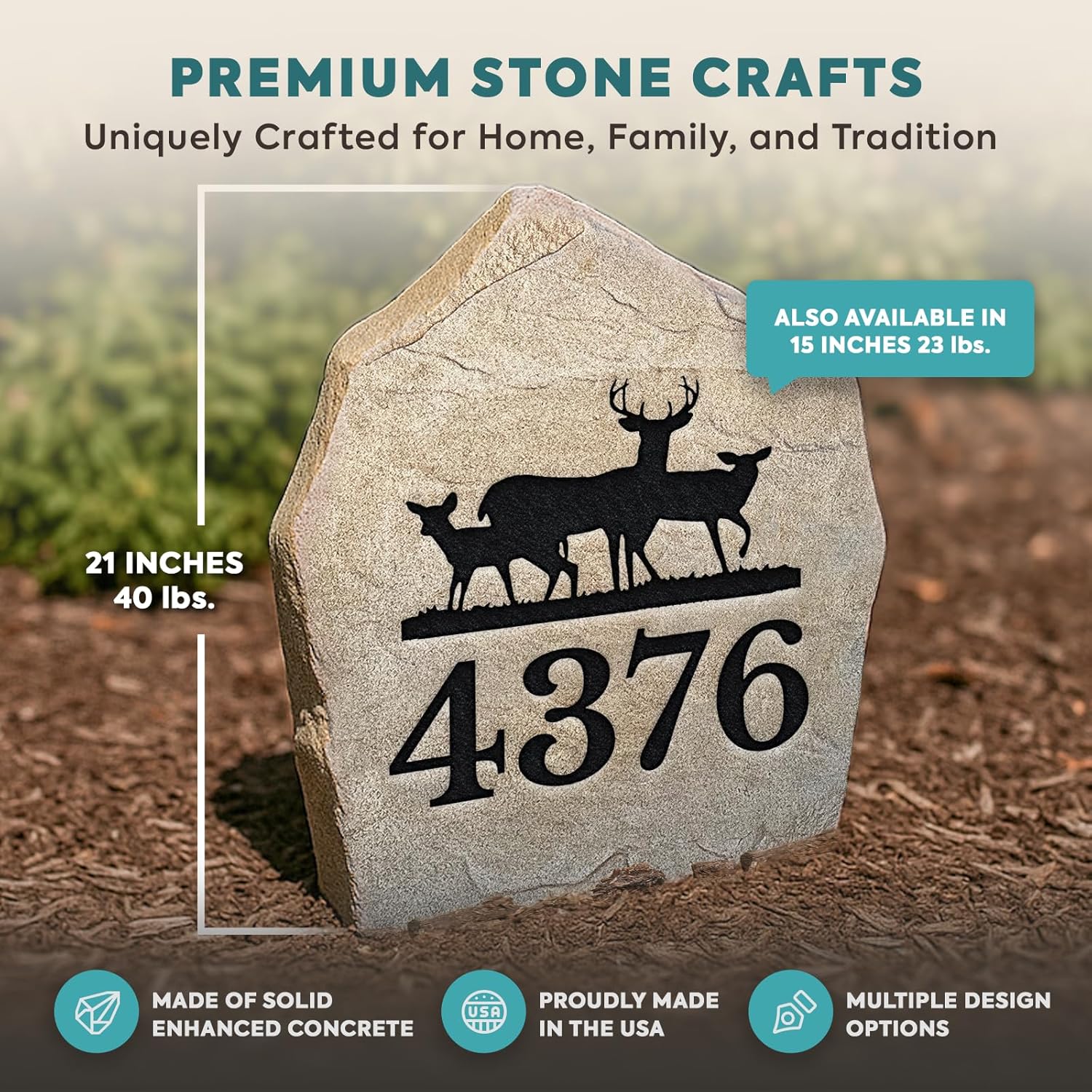 Personalized Deer Address Stone - Address Sign Garden Stone - Sandstone 21" x 21" - Address Marker by Design A Stone