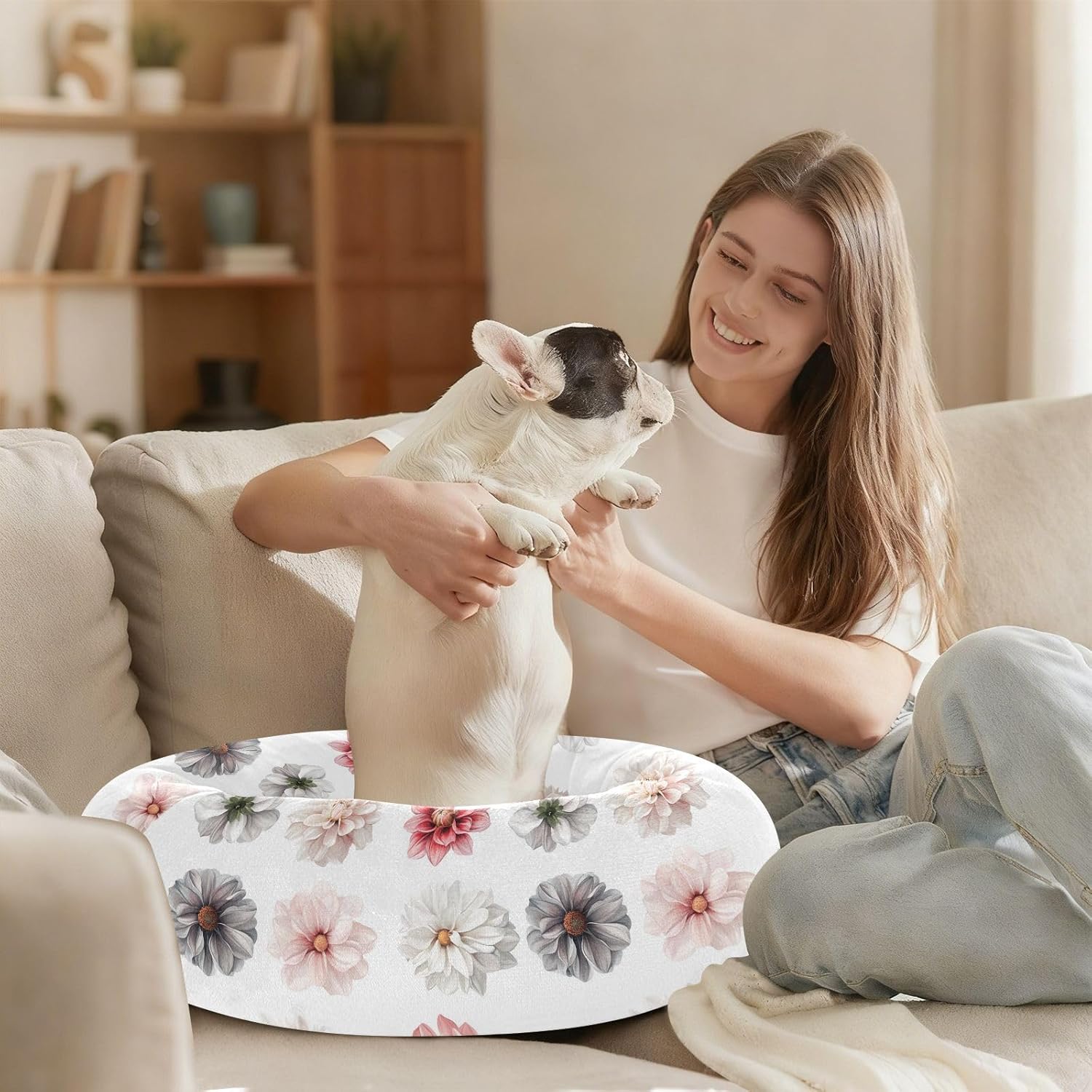 Material: Polyester + Filled Fiber + Drip Plastic. Our Cat Pillow Bed is designed in a donut style and made of soft plush fabric, which has a fine and smooth touch and can bring a warm and comfortable feeling to pets.Product Design: The overall shape is circular with raised edges, allowing your dog and cat to curl up for fun. Cat Pillow Bed provides support for the head and neck, promoting a sense of security without worry.Applicable Scenarios: This comfortable bed can be used by pets such as cats and dogs. Cat Pillow Bed can be used in scenarios such as living rooms, floors, sofas, cages, and cars.Easy To Clean: This Cat Pillow Bed is also designed with a detachable and washable structure, making it convenient for pet owners to clean it regularly and keep the bed clean and hygienic, which is beneficial to the health of their pets.
