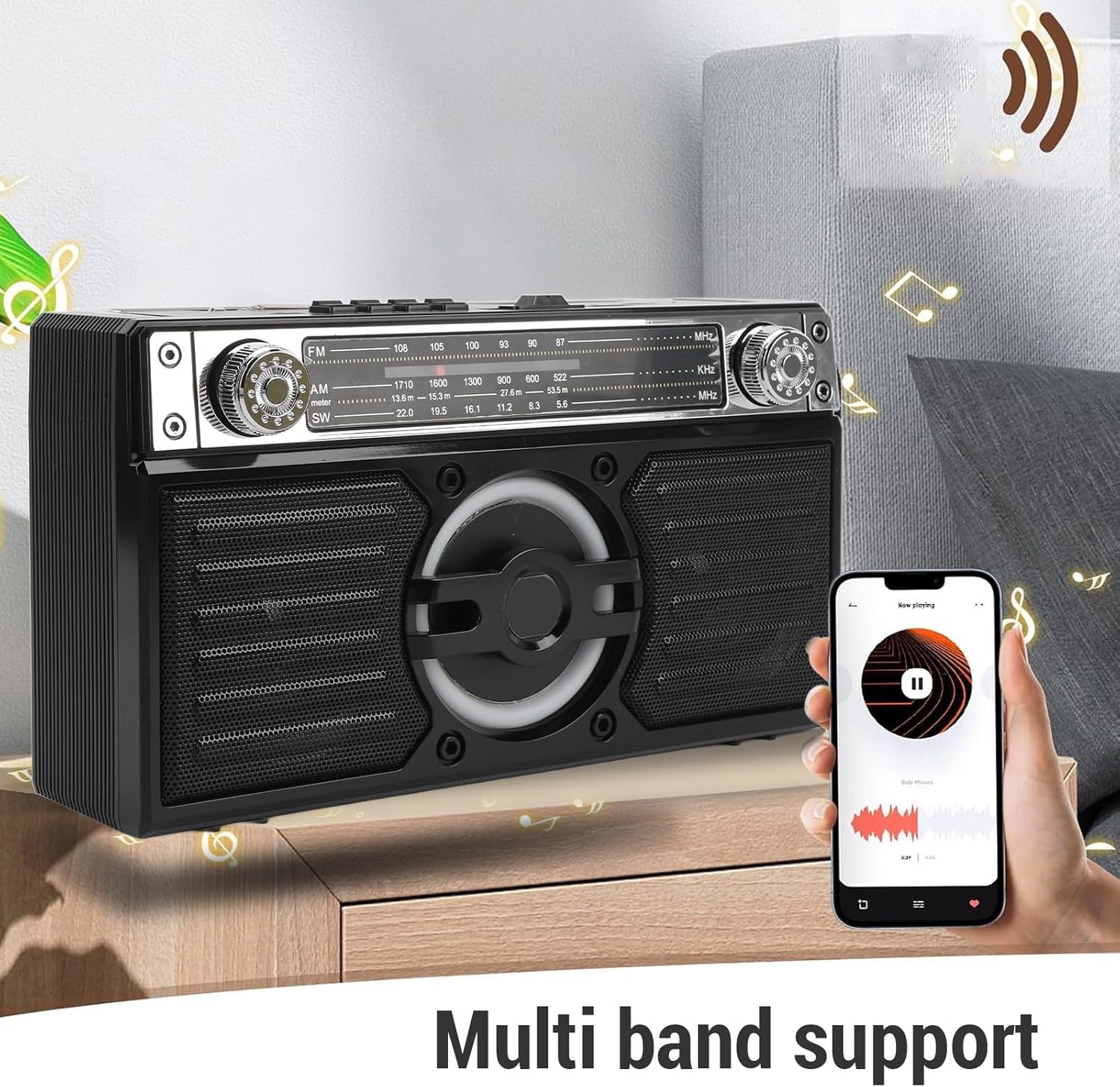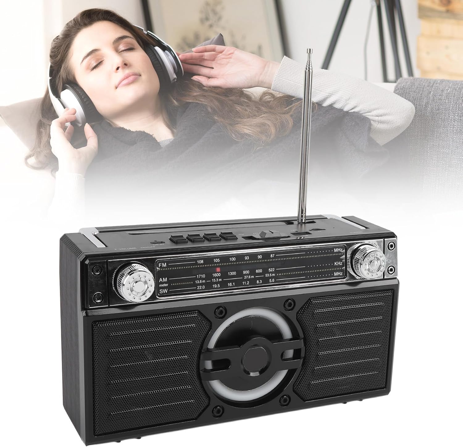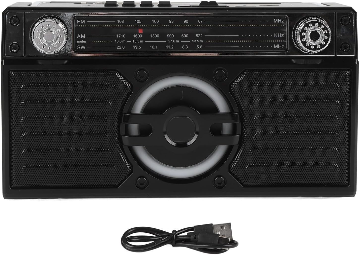 1. FOUR IN ONE FUNCTIONALITY: With the portable radio, you can enjoy your favorite FM stations, stream sound from Bluetooth enabled devices, play music from a USB drive or from a storage card. 2. INCREDIBLE VOLUME AND SOUND: Equipped with double 5 watt drivers speakers, the radio delivers an immersive acoustic experience with left and right speaker separation. 3. CLEAR FM RECEPTION: Enjoy boosted FM reception that allows you to listen to your favorite stations in clear sound quality without interruptions. 4. PORTABLE: Thanks to its lightweight and compact design, the radio is easy to carry, letting you enjoy audiobooks and FM stations on the go. Whether you are in the garden, bathroom, it offers dependable performance. 5. EXTENDED PLAYTIME: Up to 18 hours of battery life allows you to use it for most of the day. When the battery is low, the Type C port makes recharging a breeze. Specification: Item Type: Portable Radio Material: ABS FM: 87-108MHz AM: 522-1710KHz SW : 5.6-22MHz Battery Specifications: 2 x D Dry Battery And 1 x Li Battery (Excluded) Storage Card, Small Memory Card: Maximum Support 32G (Excluded) How to Use: Read the instructions for use. PackageList: 1 x Portable Radio 1 x Instruction Manual 1 x Charging Cable