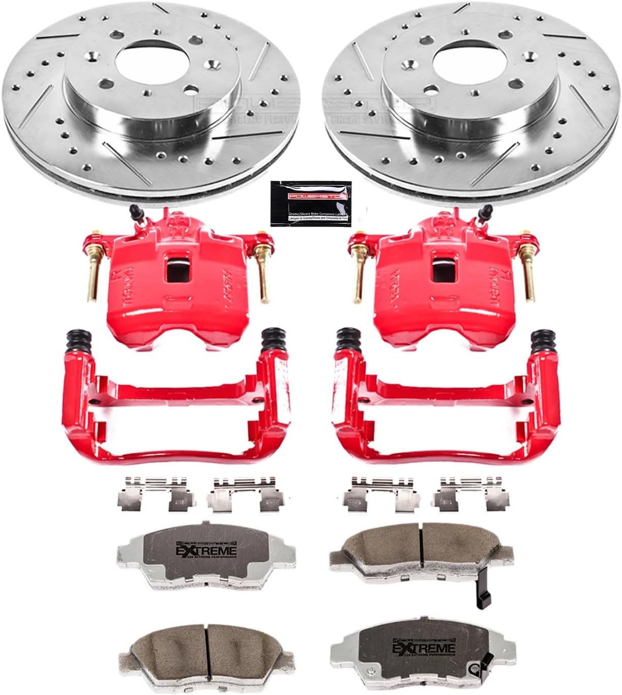 Product: PowerStop Z26 Street Warrior Performance Brake Pads & Rotor Kit with CalipersWhat’s in the Box: This premium complete Z26 brake kit upgrade includes Z26 Carbon-Fiber Ceramic Brake Pads, Drilled & Slotted Rotors, Red Powder-Coated Calipers, Rubberized Shims, and Installation HardwareEngineered For:Performance Seekers - This kit matches to muscle cars and enhanced performance vehicles for the driving enthusiastCorner Conquering - The brake torque from the Z26 pads is consistently higher than original equipment with outstanding thermal stability to provide better performance around turnsThe Eye Catcher - Red Powder Coated Calipers provide an iconic pop while resisting rust and corrosion, extending the life of your brake systemComponent Breakdown:Z26 Carbon-Fiber Ceramic Brake Pads - The included Z26 pads use a low-dust ceramic formula reinforced with carbon fibers. This provides severe-duty stopping power without sacrificing everyday drivability or creating noiseDrilled & Slotted Performance Rotors - Manufactured from G3000 metallurgy and built to strict OE tolerances. Precision-drilled holes and slots vent heat, remove gas and debris, and maintain consistent braking performance under extreme conditions. Silver Zinc Dichromate plating protects against rust and corrosionRed Powder Coated Calipers - The iconic performance red calipers not only look great behind custom wheels but are easy to clean and resist corrosion, extending the life of the braking systemEasy, Bolt-On Installation: This is a direct-fit replacement designed to install with no modifications required. All necessary hardware is included for a straightforward install using factory mounting locationsThis Item Fits:Front and Rear: 2009-10 Subaru Forester Front and Rear: 2010 Subaru Impreza WRX Limited Front and Rear: 2008-10 Subaru Impreza WRX Front and Rear: 2009-10 Subaru Impreza 2.5 GT Front and Rear: 2009-10 Subaru Impreza WRX Premium