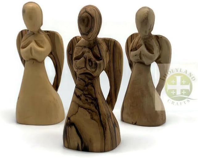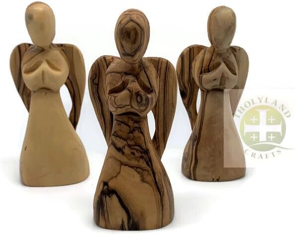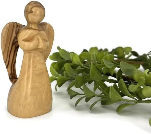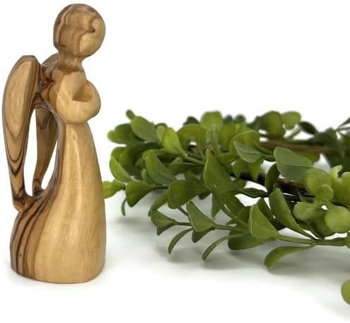 This beautiful olive wood statue of an angel is a perfect gift for many occasions, such as a housewarming gift, anniversary gift, birthday gift, Christmas gift, wedding gift or a gift for a loved one going through a difficult time. This unique and meaningful gift will be cherished for years to come. This olive wood statue of an angel figurine is hand carved by Christian artists in the Holy Land. The delicate features of the face and body are carefully carved and painted by the artist to create a beautiful and serene piece. This angel statue would make a beautiful addition to any home decor, and can be placed on a shelf, mantelpiece, or desk. It is also a perfect size for a small tabletop or desk. This olive wood statue of an angel is a perfect gift for anyone who appreciates the beauty of handcrafted items and the symbolism of angels. It would make a thoughtful and meaningful gift for a loved one, or a beautiful addition to your own home decor. Angel Dimensions: 4.2 in x 2 in An explanation card included with every purchase.